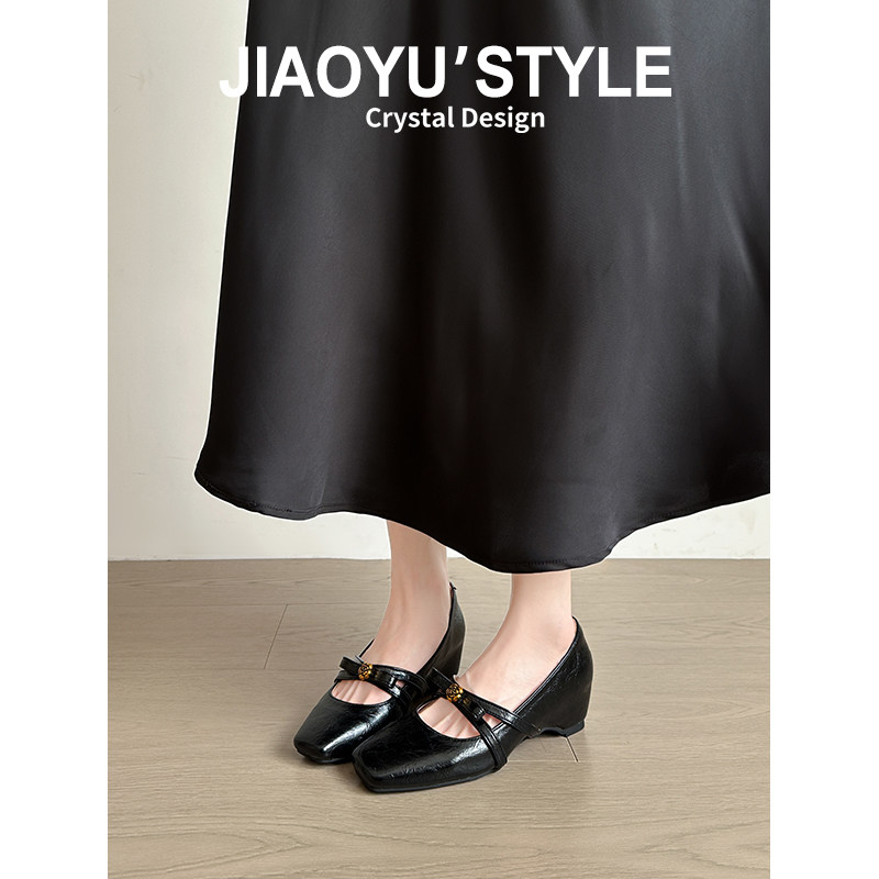 真皮~骄屿山茶花高跟鞋方头玛丽珍鞋2026新款黑色通勤小皮鞋单鞋