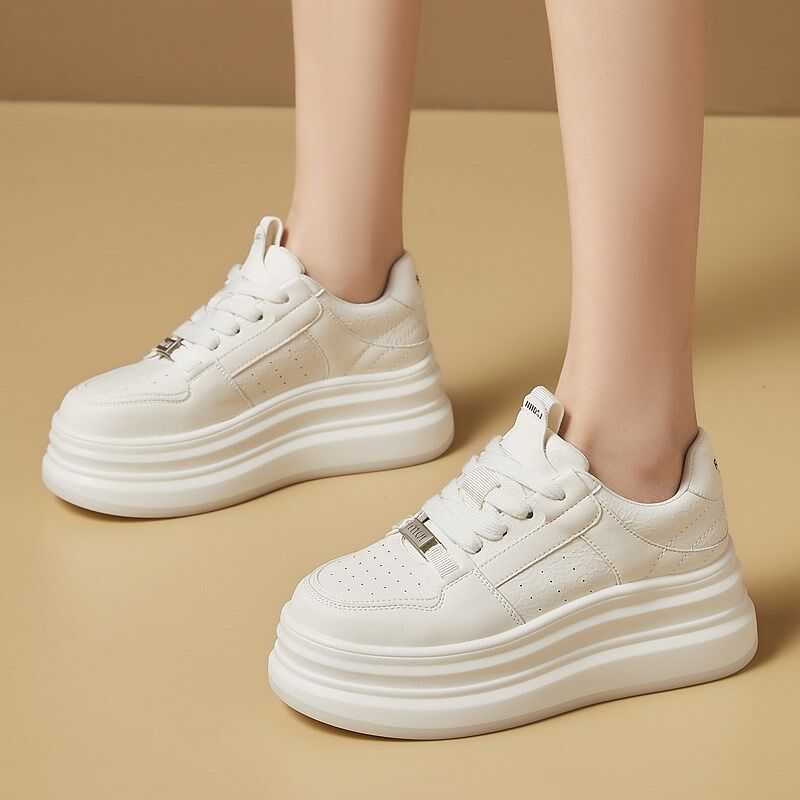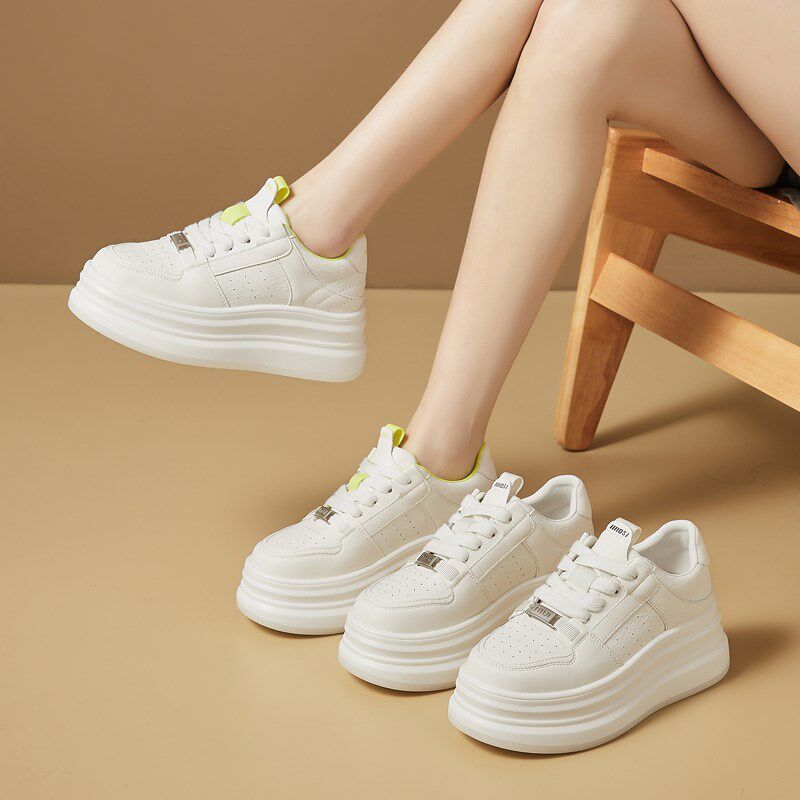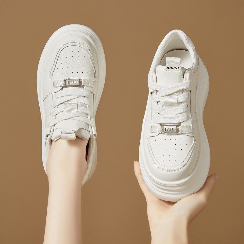 女士爆款松糕厚底增高小白鞋女鞋夏季2025新款百搭真皮休闲鞋女款