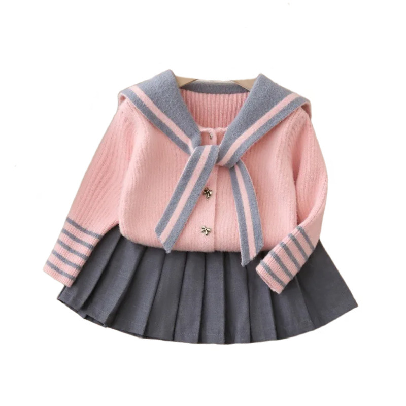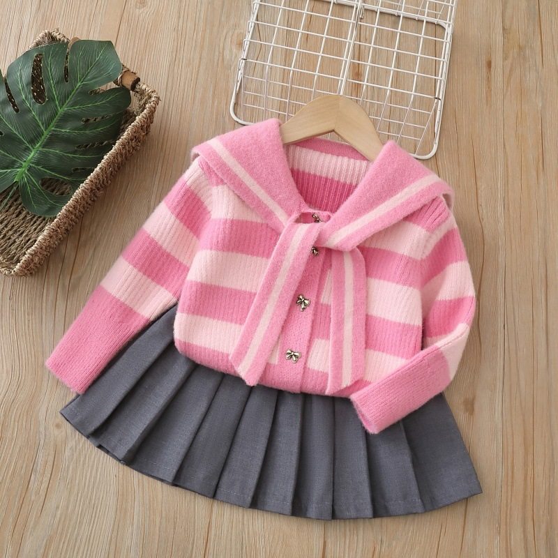 女童网红毛衣套装2025春秋季新款洋气JK裙针织开衫上衣儿童两件套