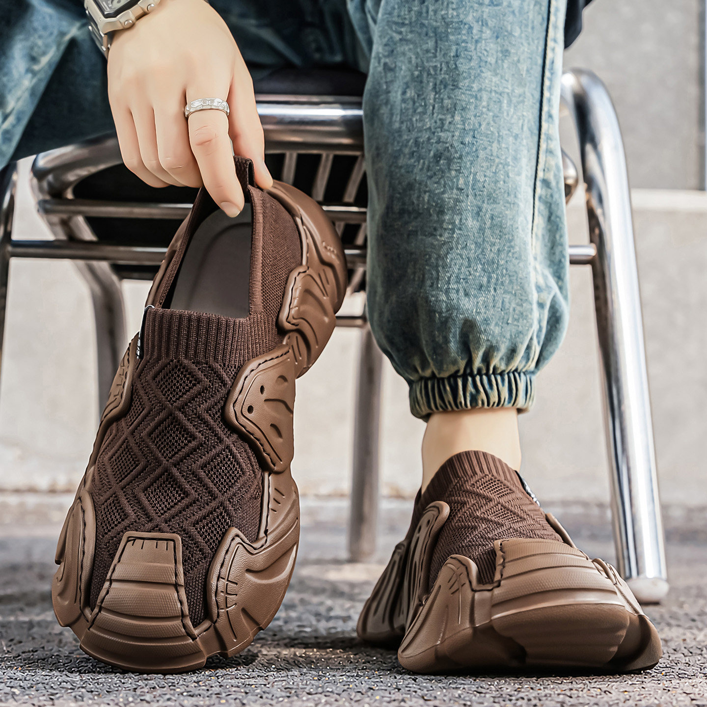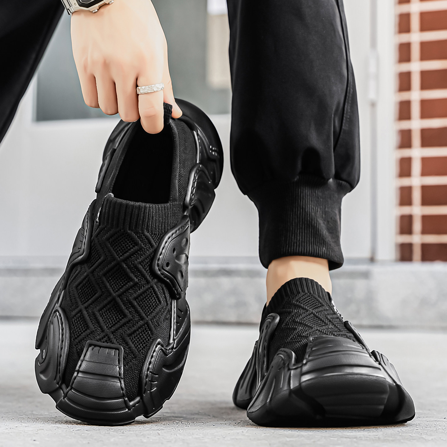 男鞋夏季飞织网面一脚蹬休闲鞋2026新款透气轻便潮流百搭男款鞋子