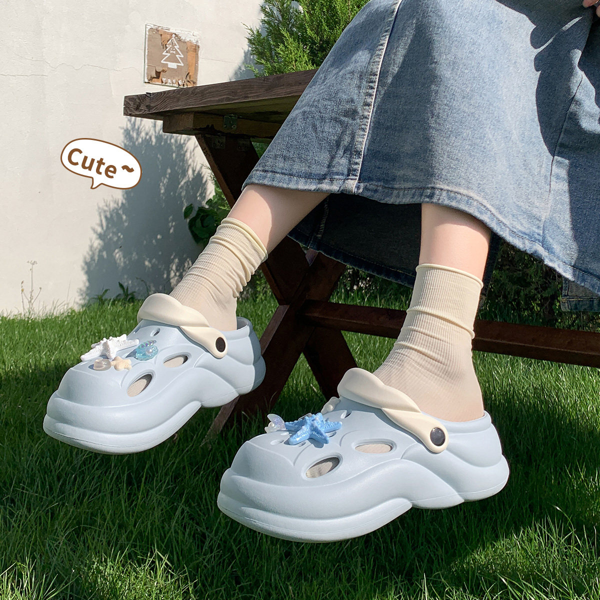 利达妮小个子洞洞鞋女夏季小码外穿防滑厚底增高沙滩凉鞋拖鞋女款