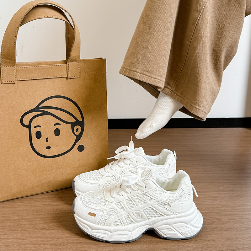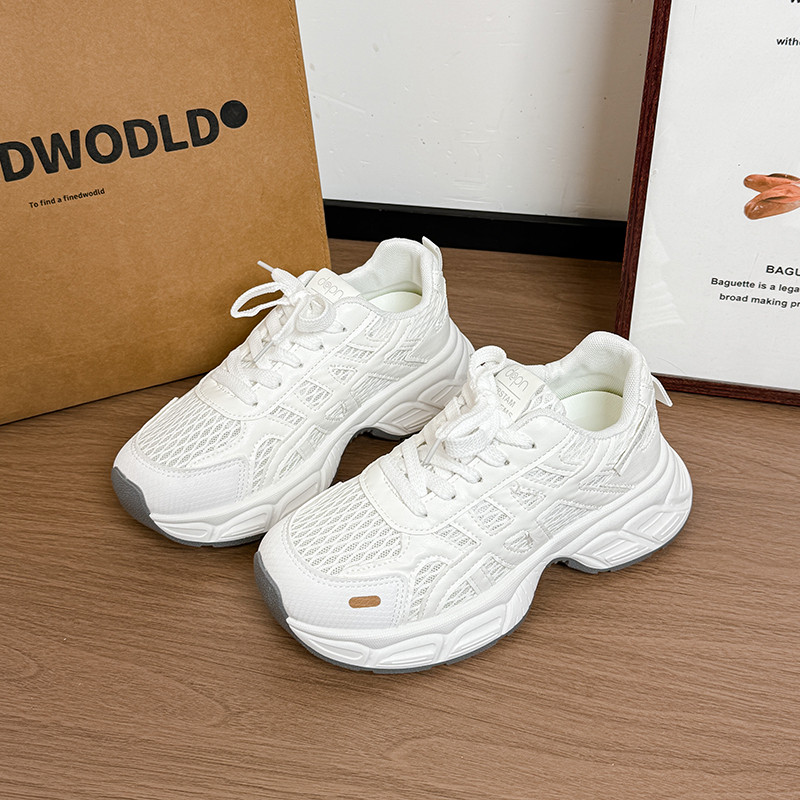 女款老爹鞋厚底潮款网面透气2026春夏新款女童鞋子运动鞋白色防滑