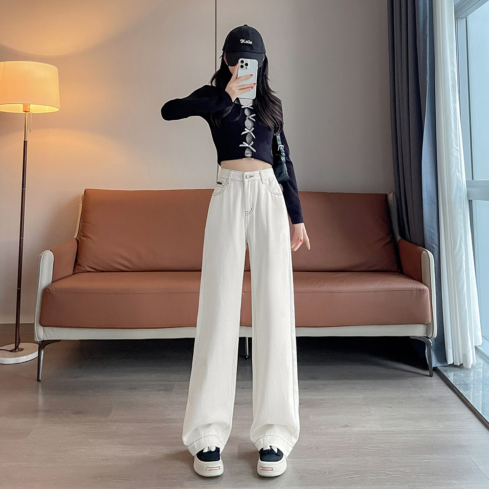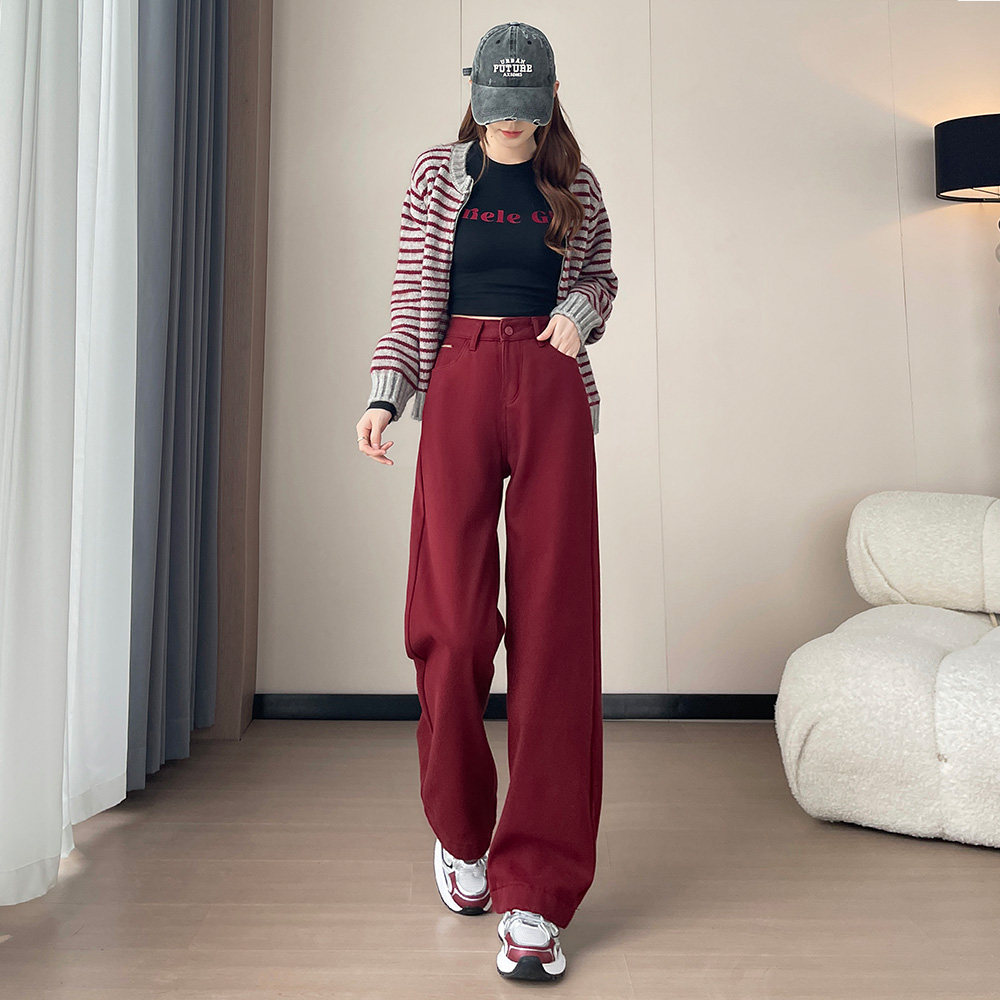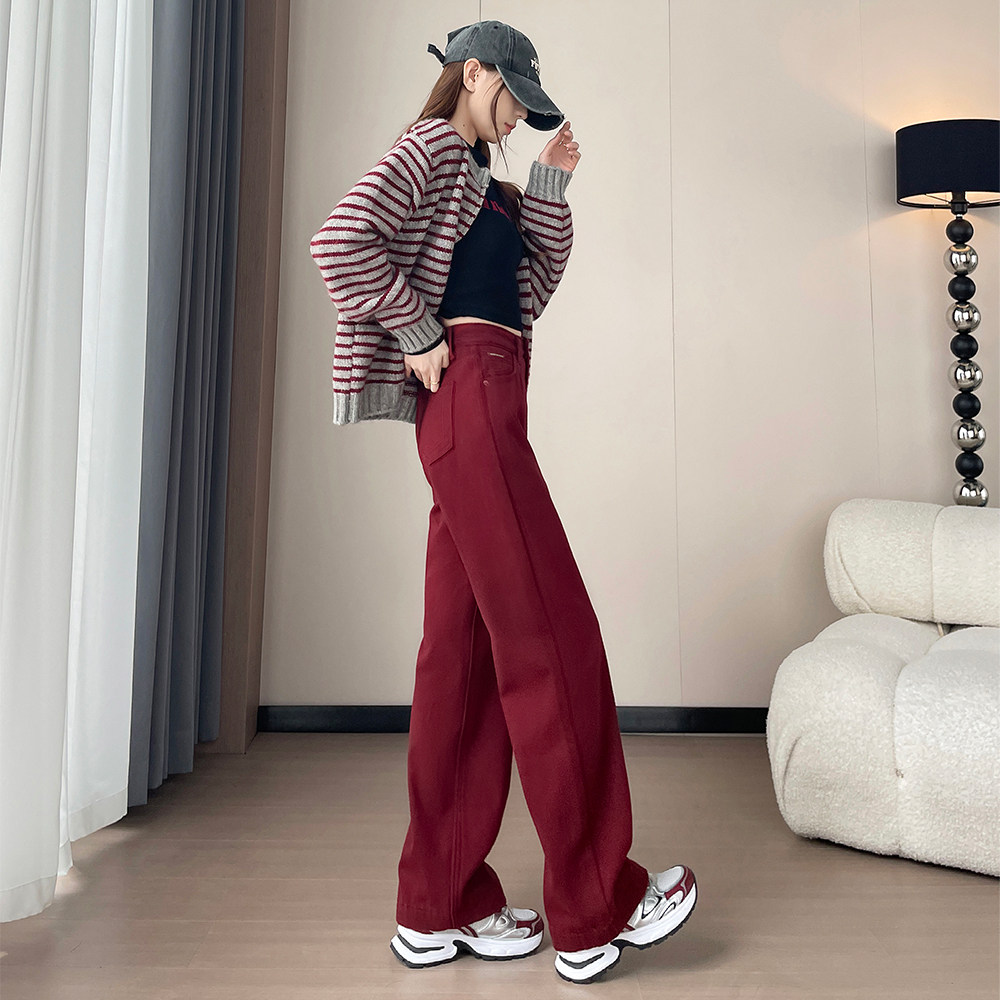 安可拉红直筒牛仔裤女款2026春秋新款爆款宽松遮肉小个子阔腿裤子