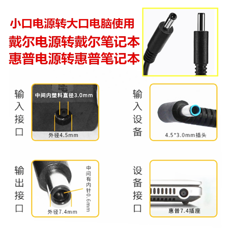 适用于惠普戴尔电源适配器4.5*3.0母转7.4*5.0公头转接头换线插头