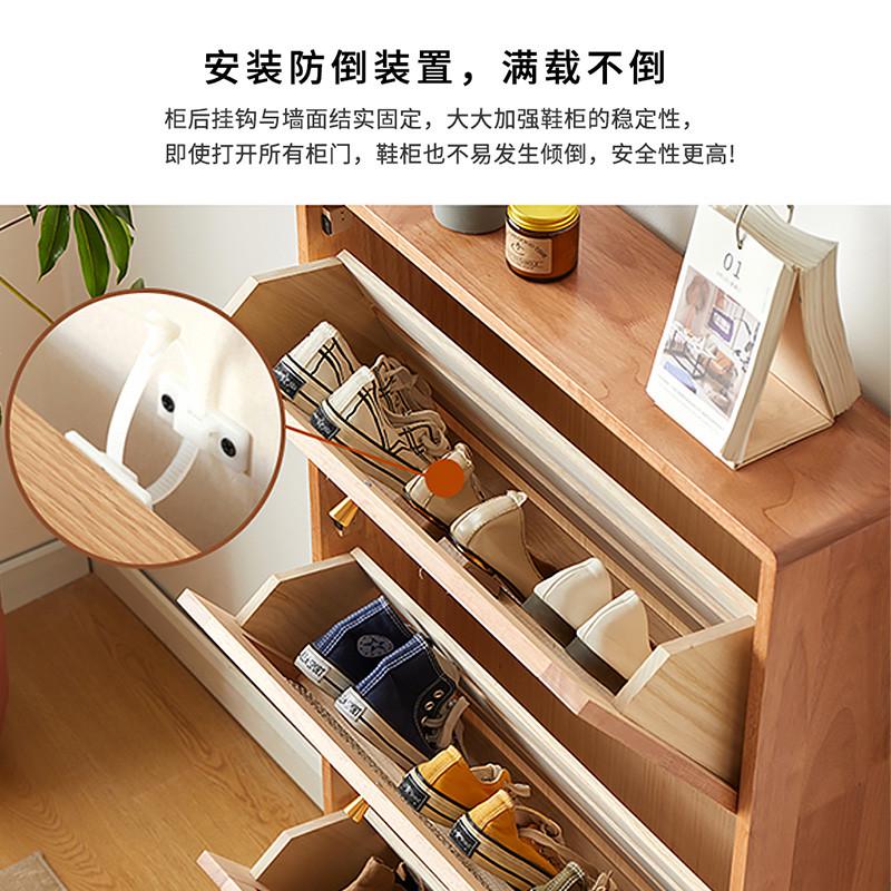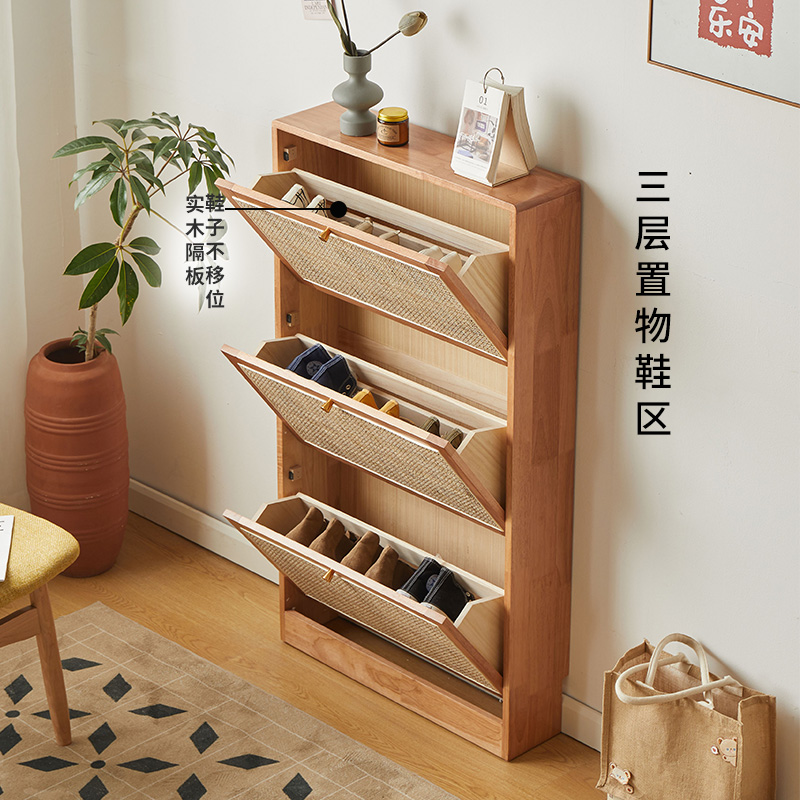日式超薄鞋柜家用门口实木藤编翻斗鞋柜落地柜小户型透气窄玄关柜