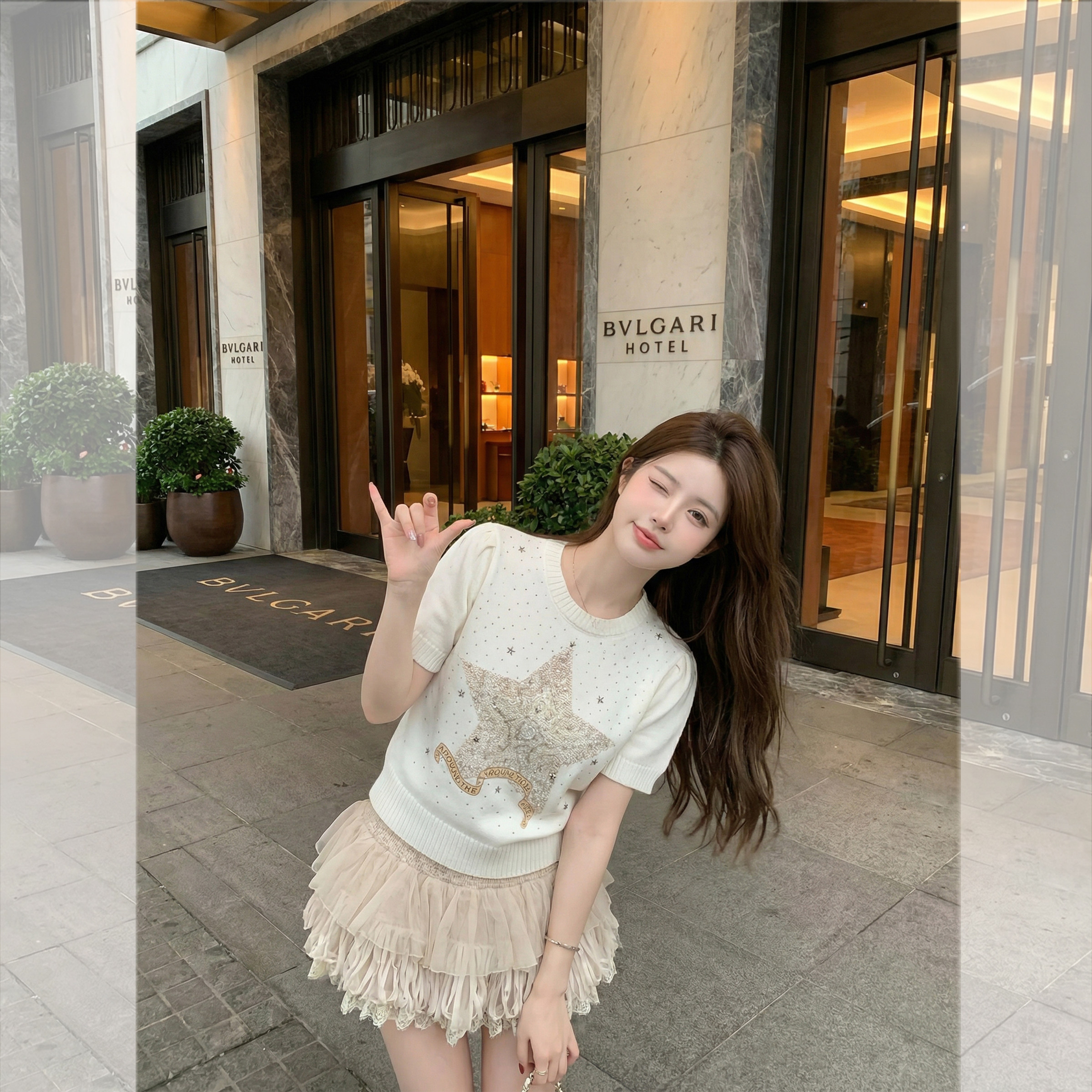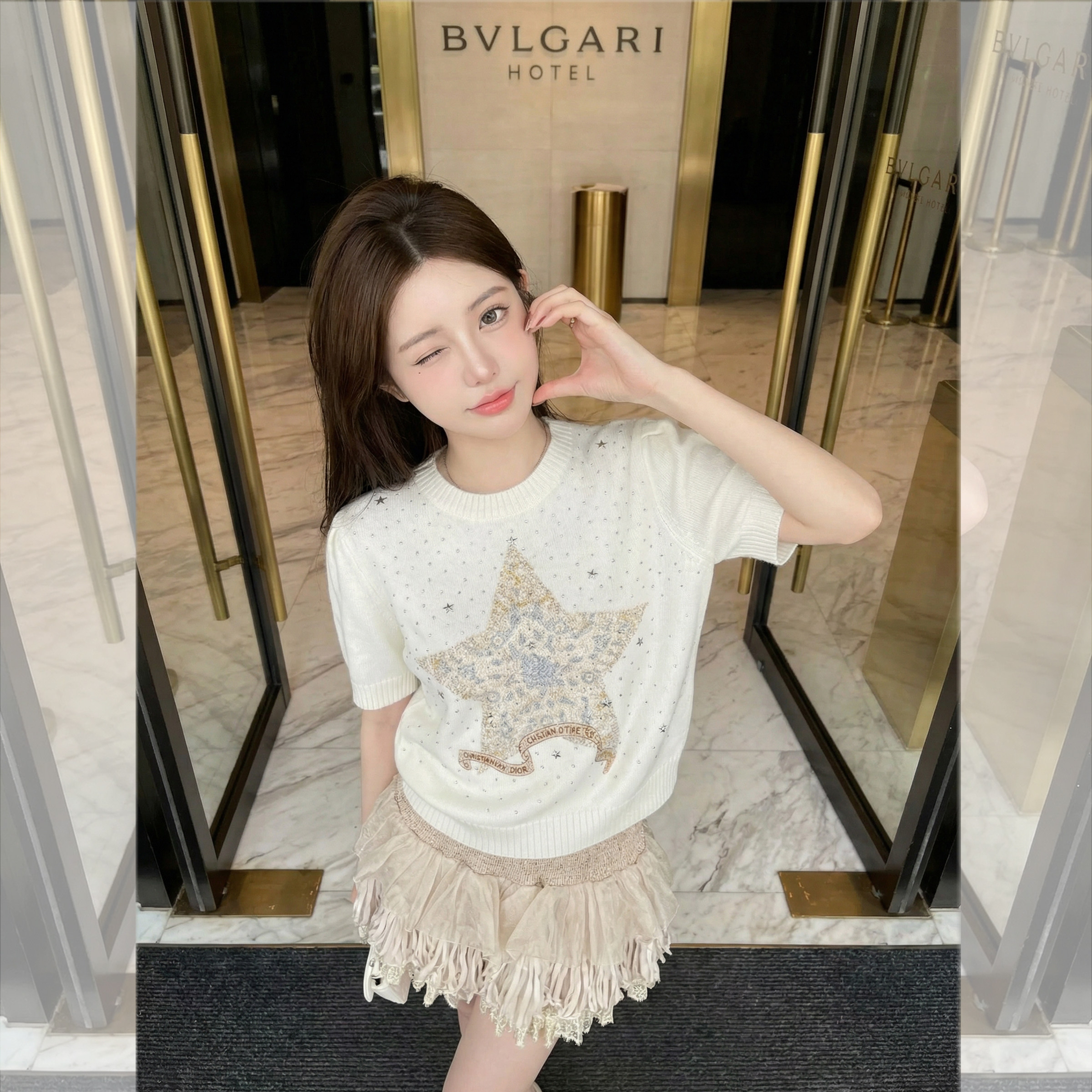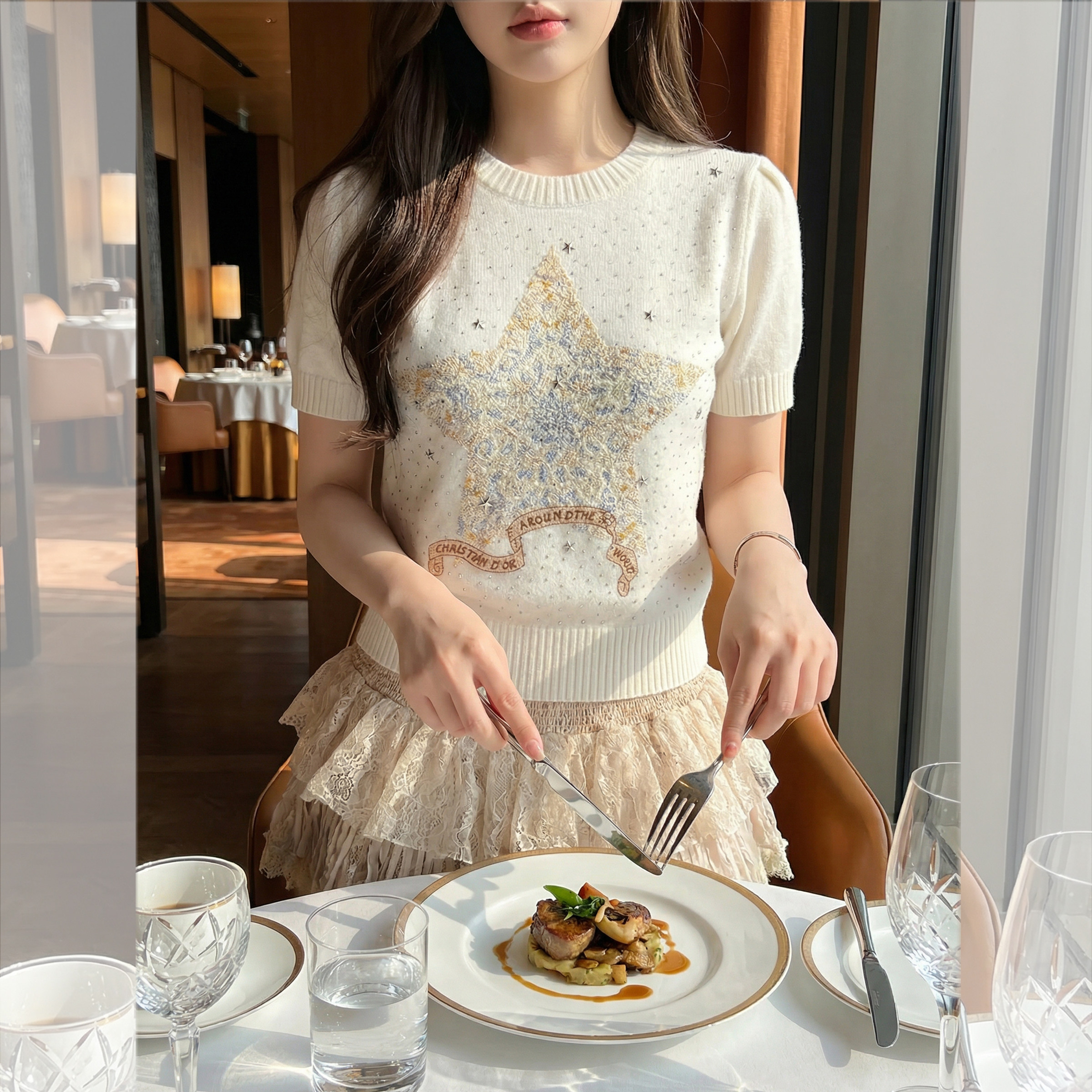 钟菲菲春款2026新款女装针织chic气质上衣短袖高端小资独特漂亮