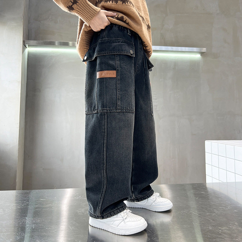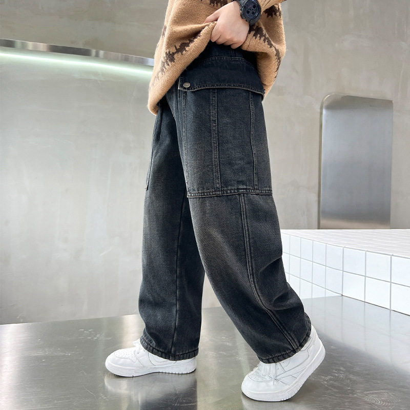 男童牛仔裤春秋款童装2026新款儿童长裤中大童阔腿裤子痞帅休闲裤