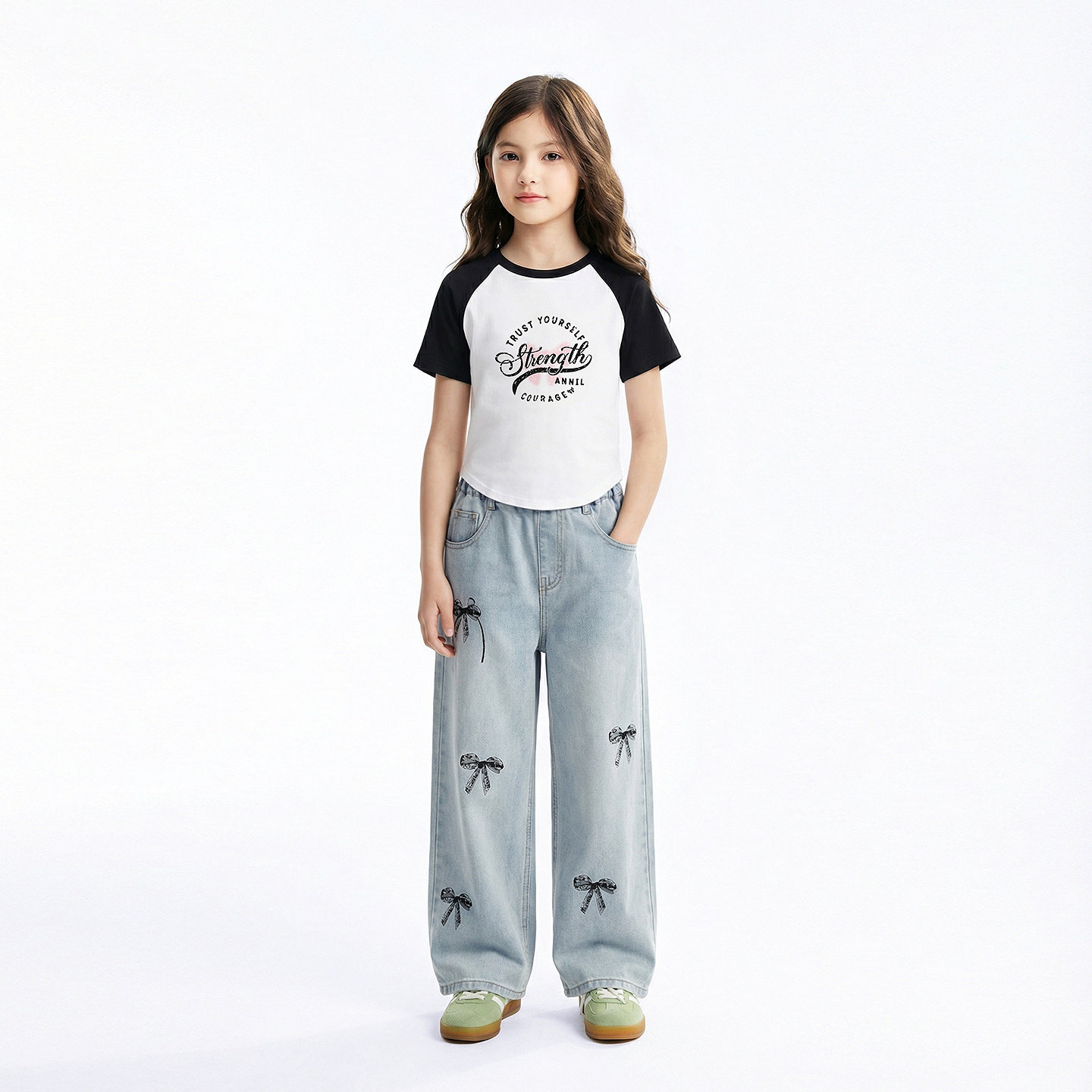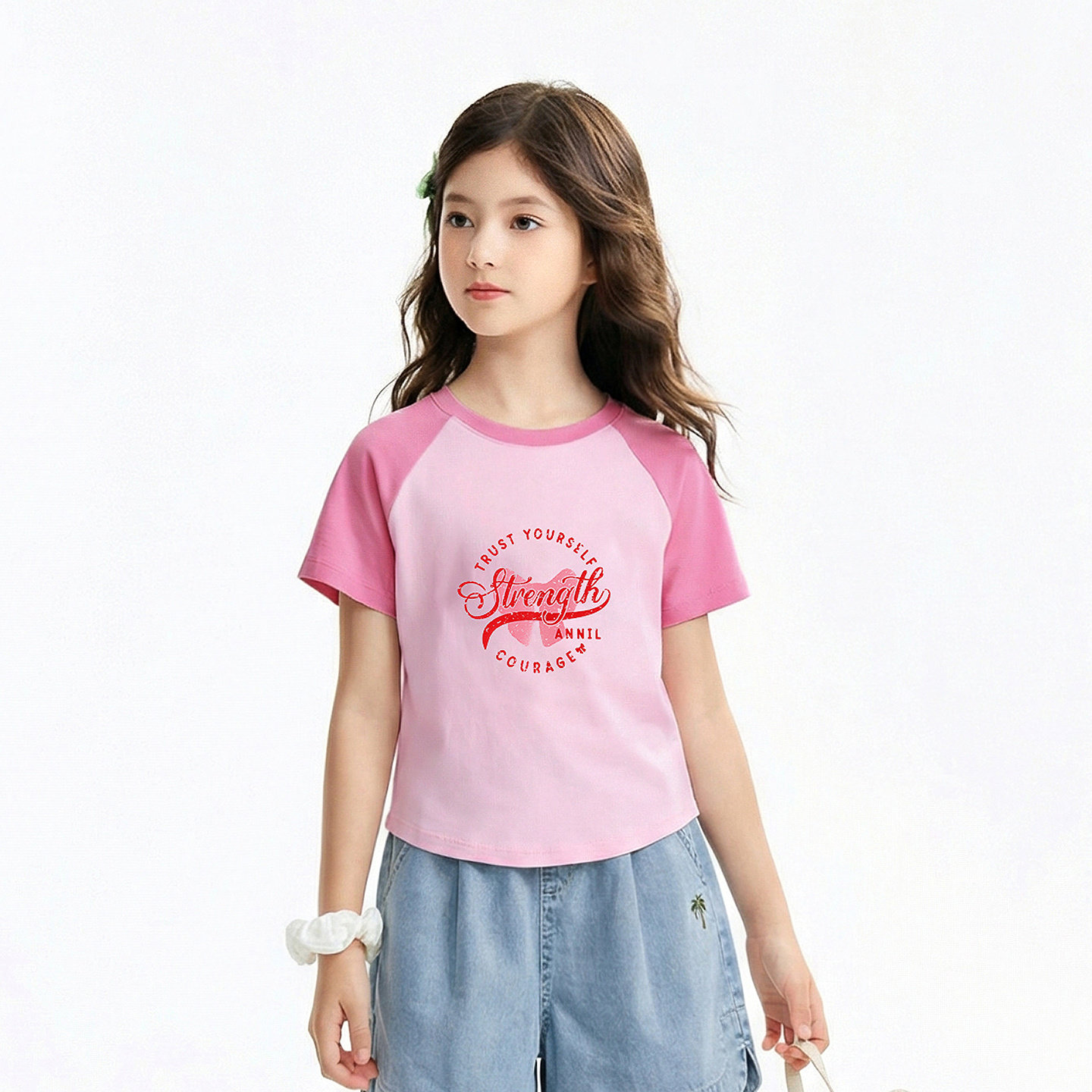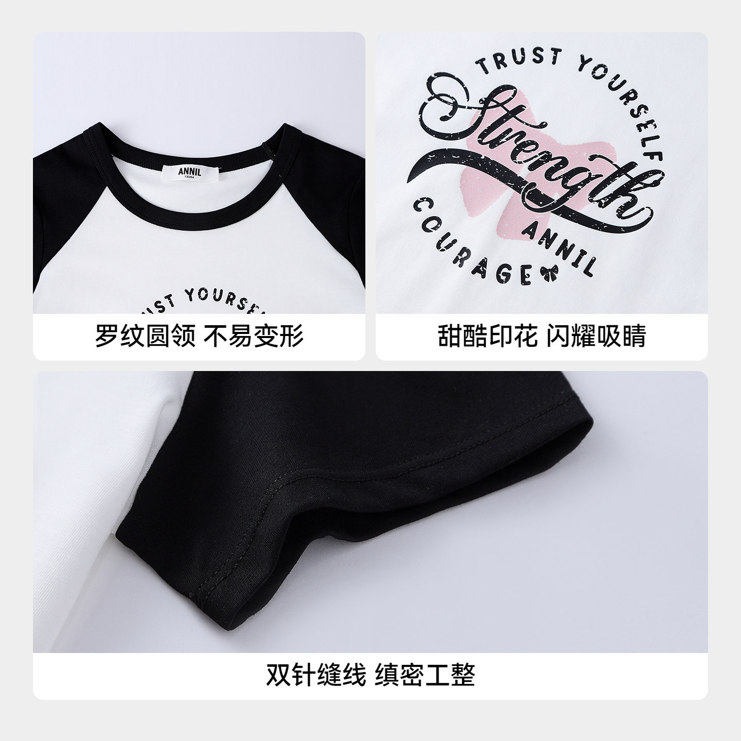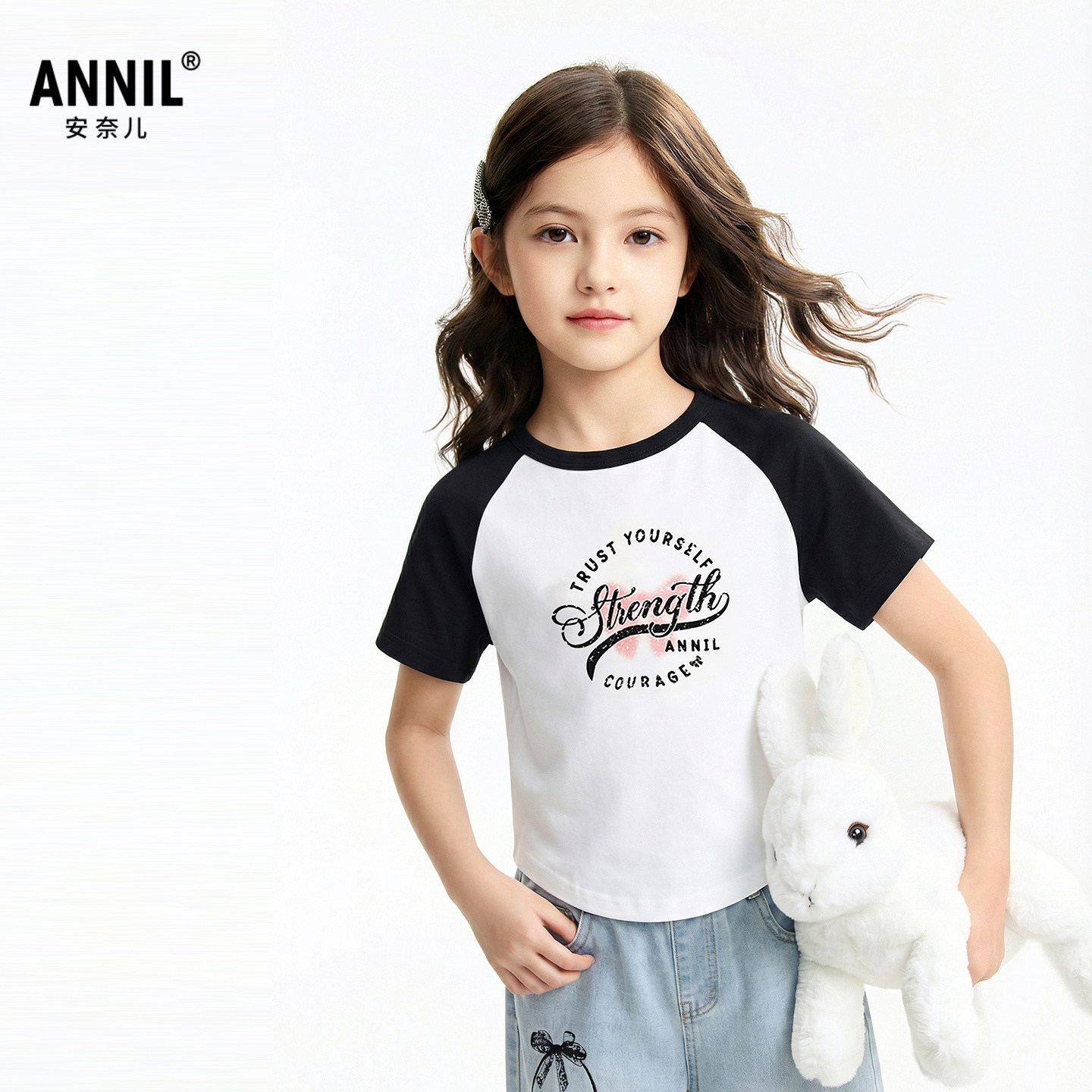 安奈儿女童圆领短袖T恤衫2026夏新款短款修身运动休闲上衣百搭