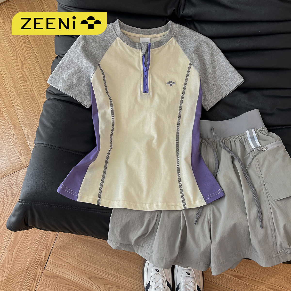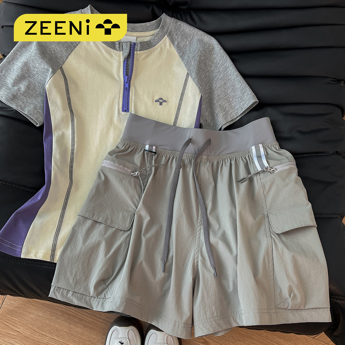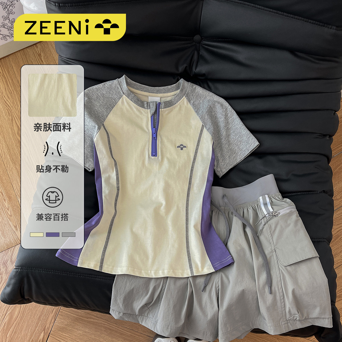 ZEENI抗菌速干衣羽毛球t恤训练服女工装休闲短裤户外健身运动套装