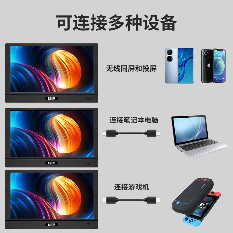 三显无线投屏多功能手机同屏直播便携显示器学习创意游戏高清大屏