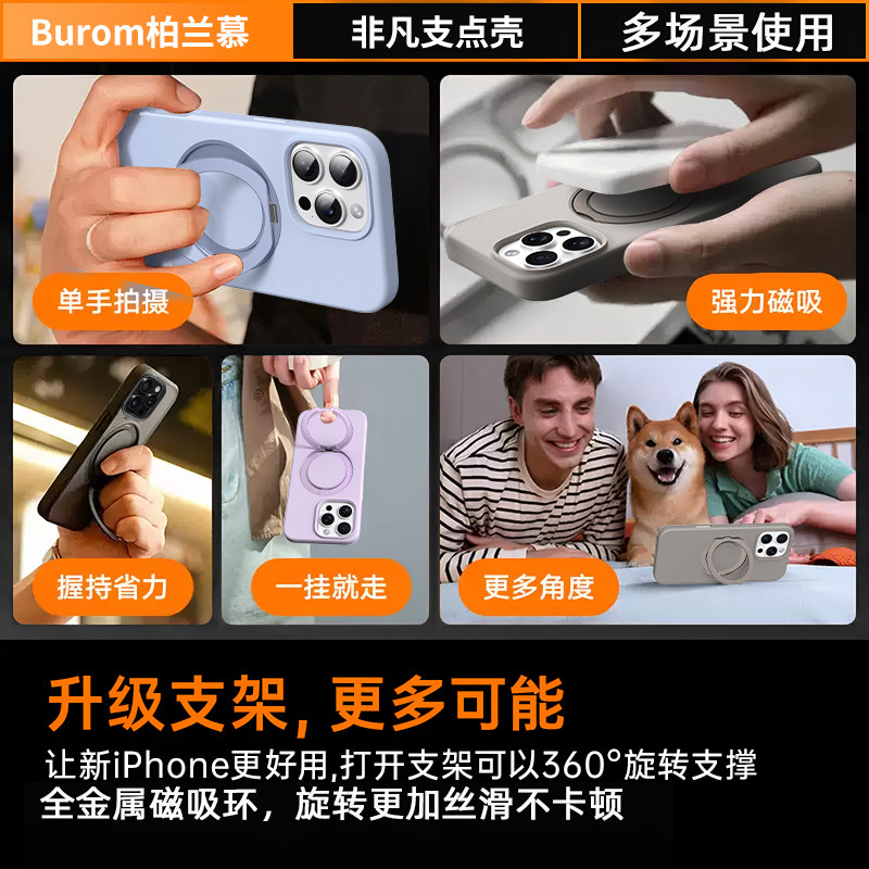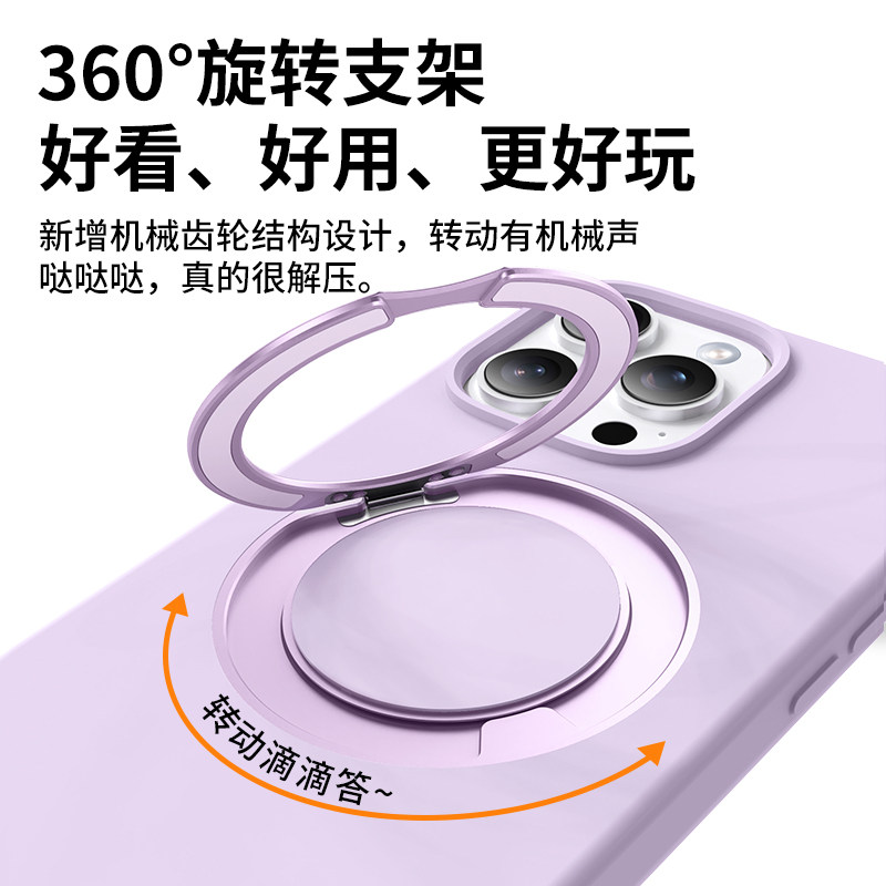 适用苹果16Pro手机壳新款超薄17promax液态硅胶磁吸支架iPhone15解压旋转支点壳16全包按键15pro简约小众情侣