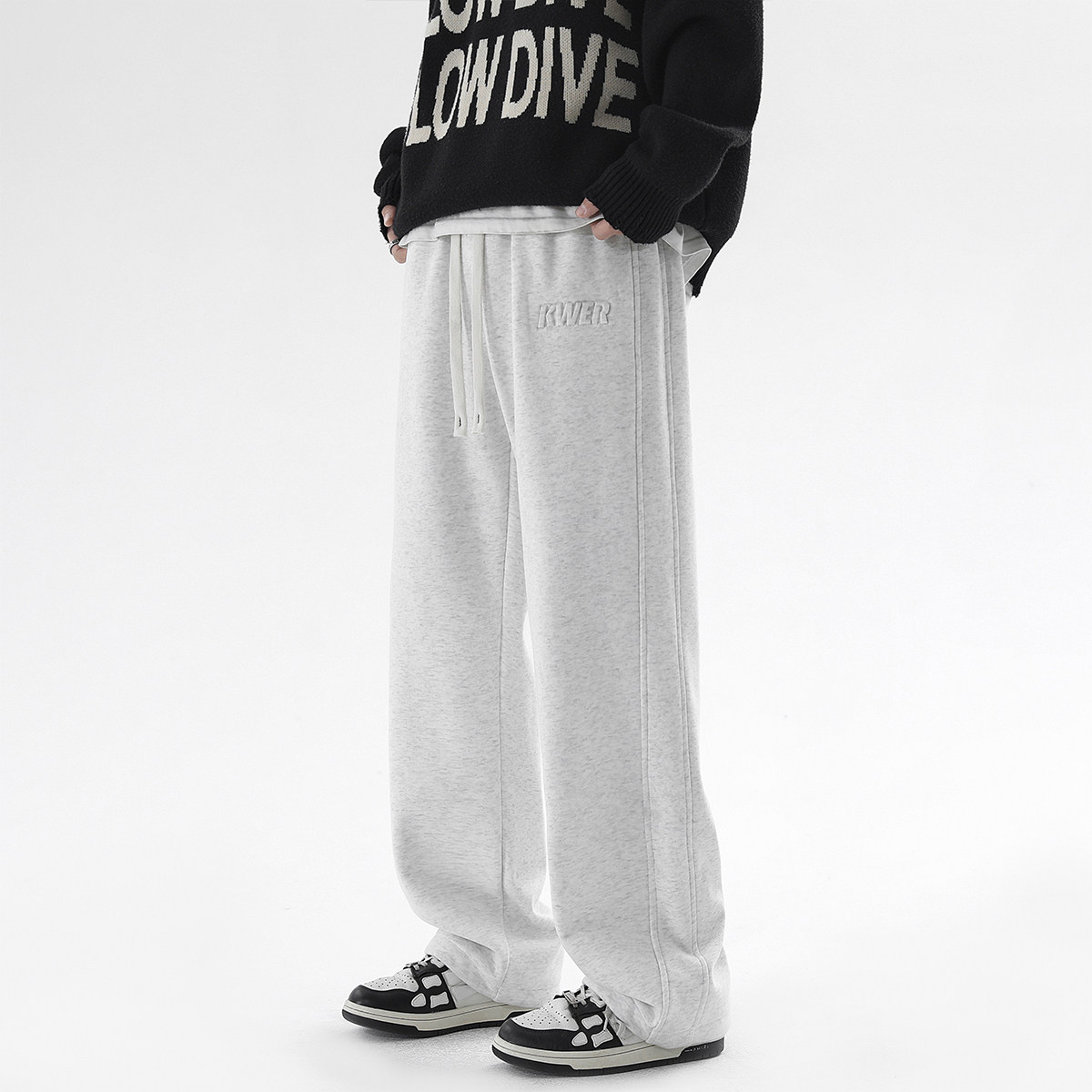 青少年加绒加厚裤子男生190高个子加长版卫裤冬季宽松休闲运动裤