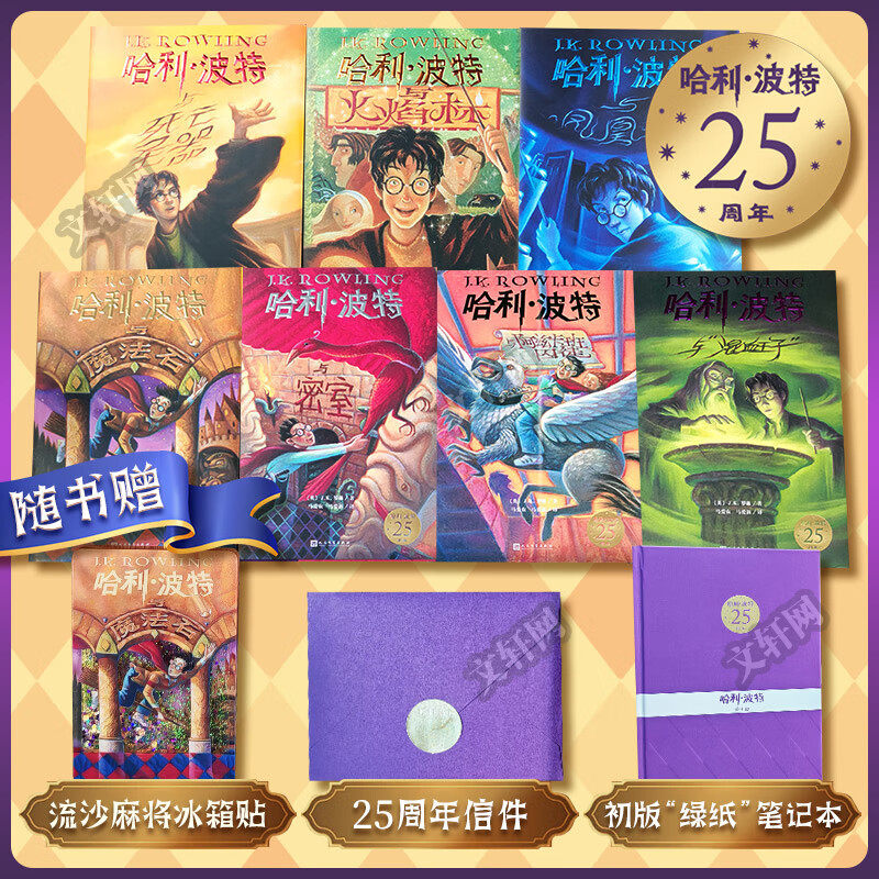 哈利波特25周年纪念精装版特定防撞箱+5个吧唧全7册初版经典限定特别制作珍藏与魔法石密室阿兹卡班囚徒火焰杯凤凰社混血王子死亡