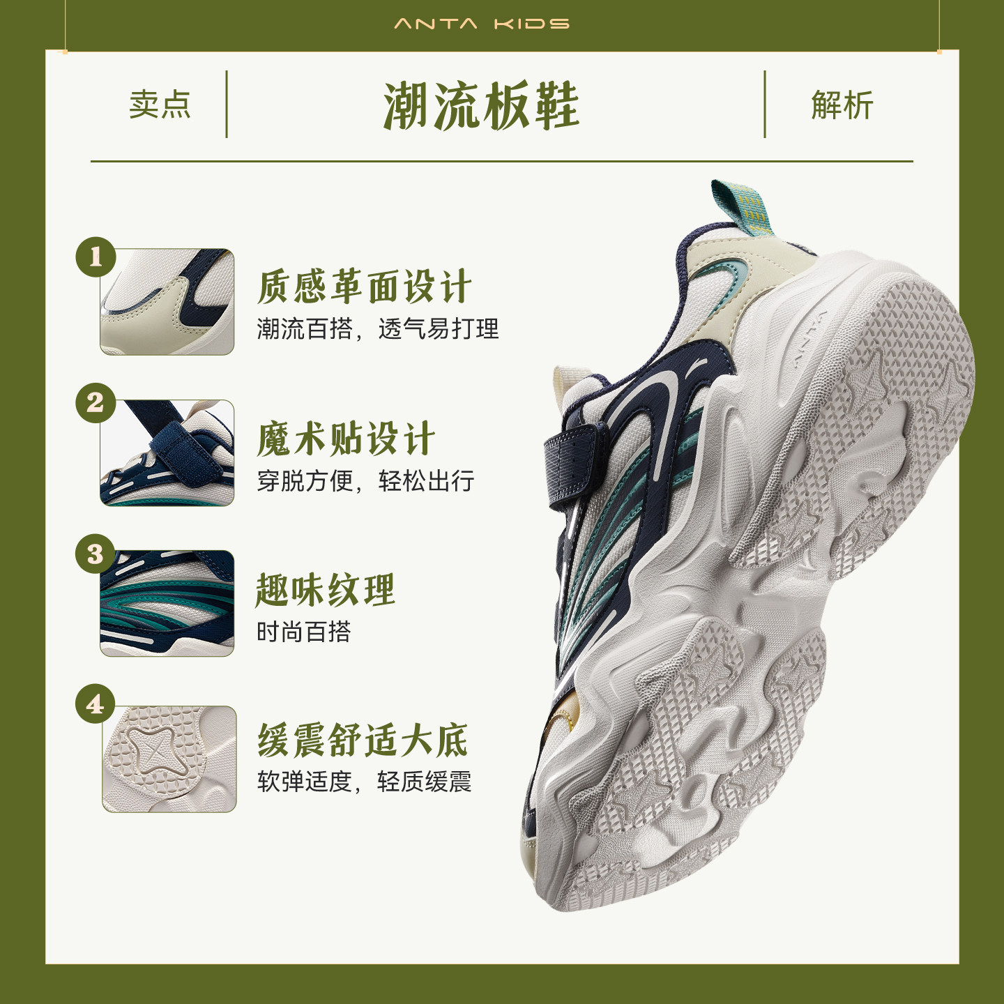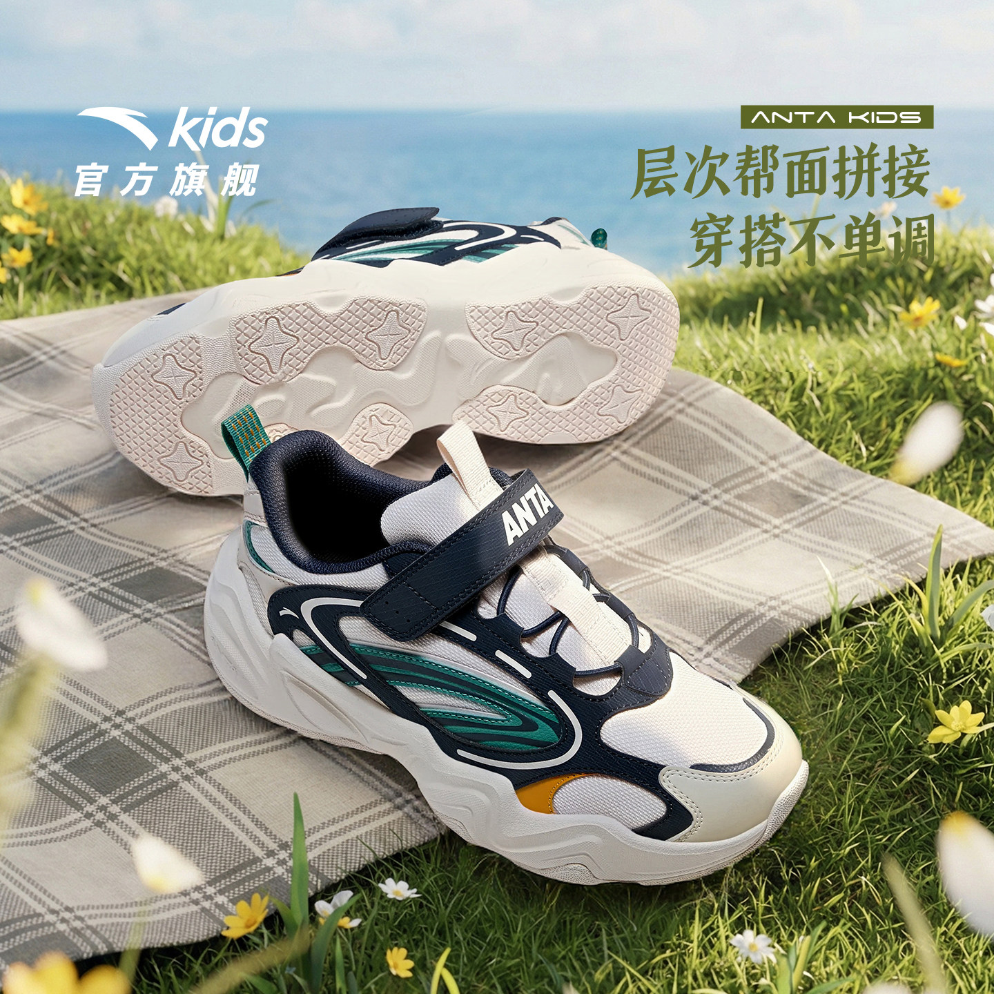 安踏儿童运动鞋男童鞋2026春季新款犟弹复古老爹鞋女童鞋休闲鞋