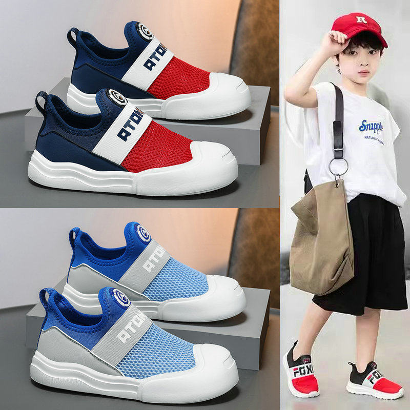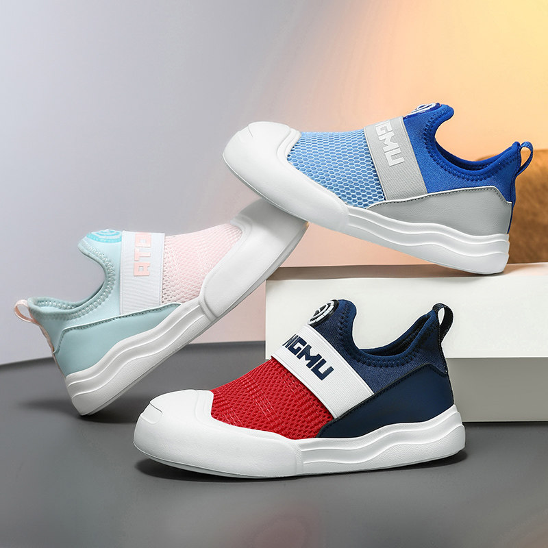 女童运动鞋春秋网面透气一脚蹬轻便软底女孩跑步儿童幼儿园室内鞋