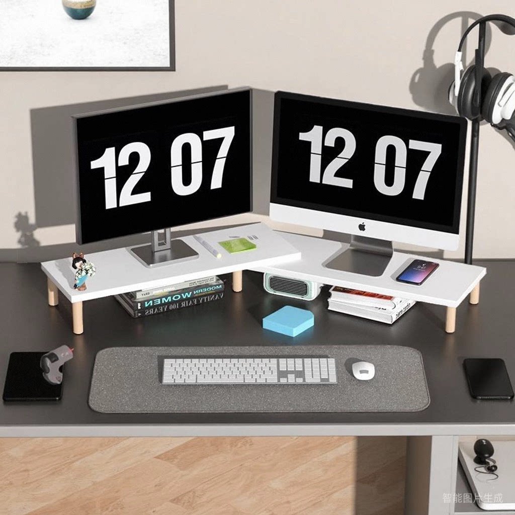 双屏显示器增高架加长双机位办公室台式电脑桌面增高双显示屏垫高