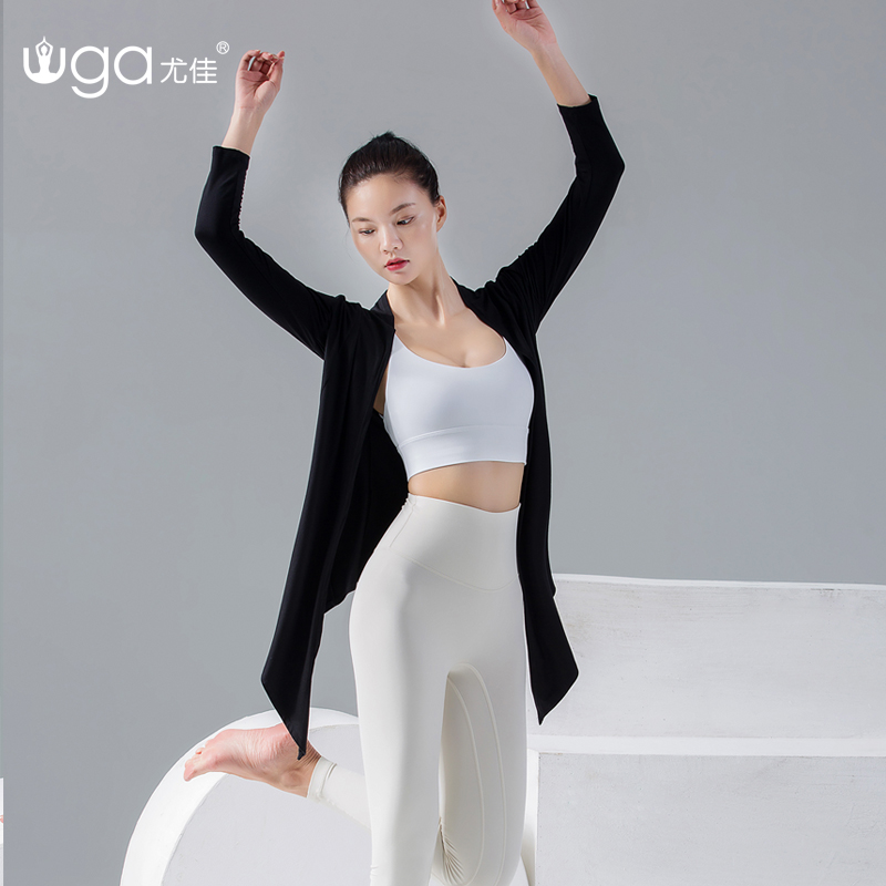 尤佳宽松瑜伽服女罩衫气质健身服外搭外套大码长袖瑜伽上衣女春夏