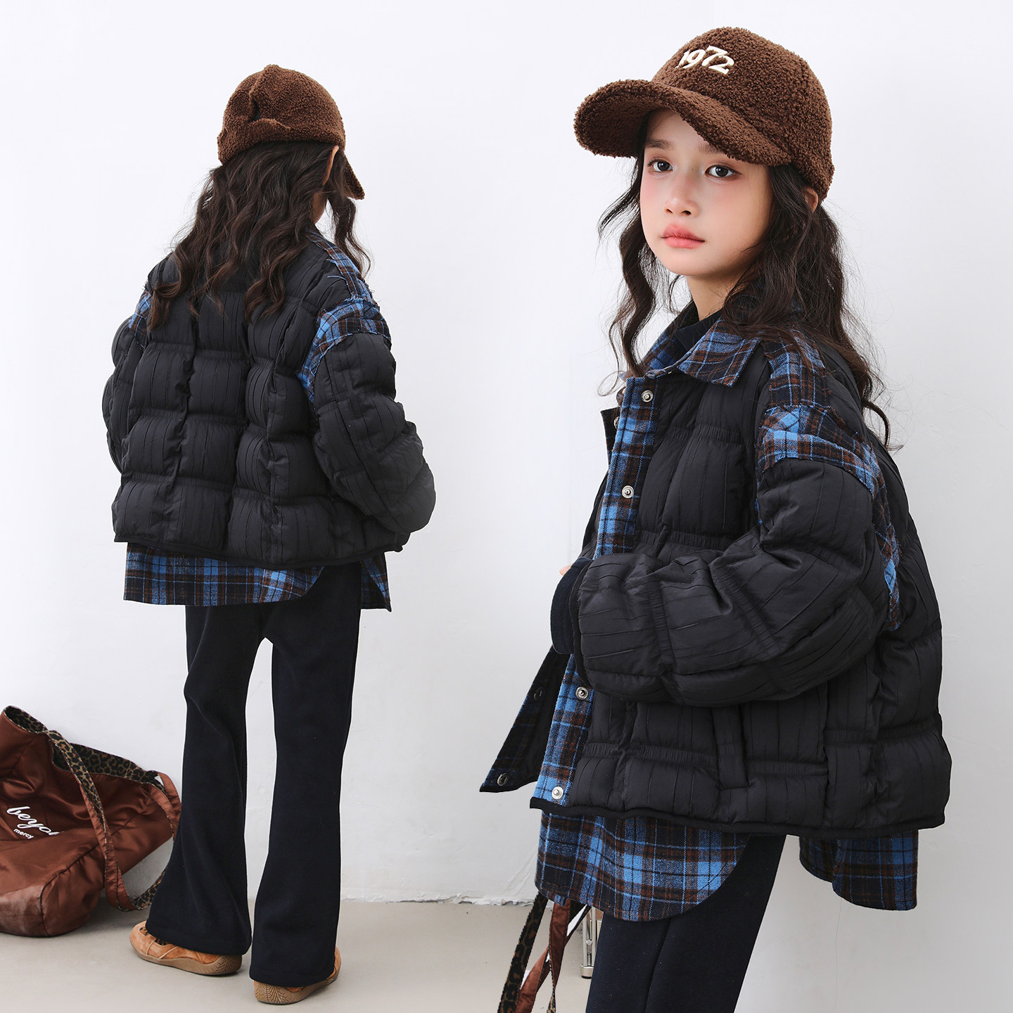 女童冬装羽绒服2026新款中大儿童洋气时髦拼接款冬季90白鸭绒外套