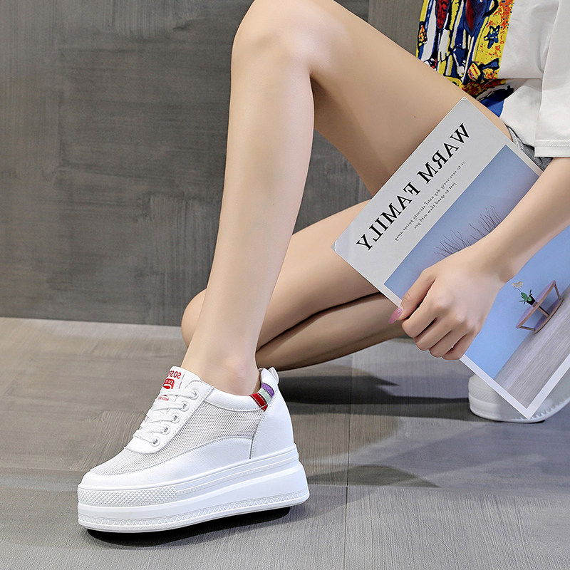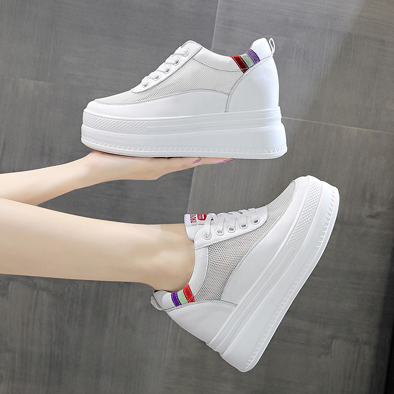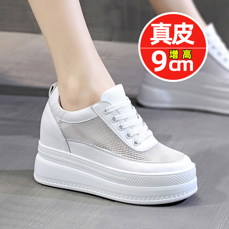 爆款真皮内增高小白鞋网面t透气夏天9公分休闲鞋厚底百搭女鞋子潮