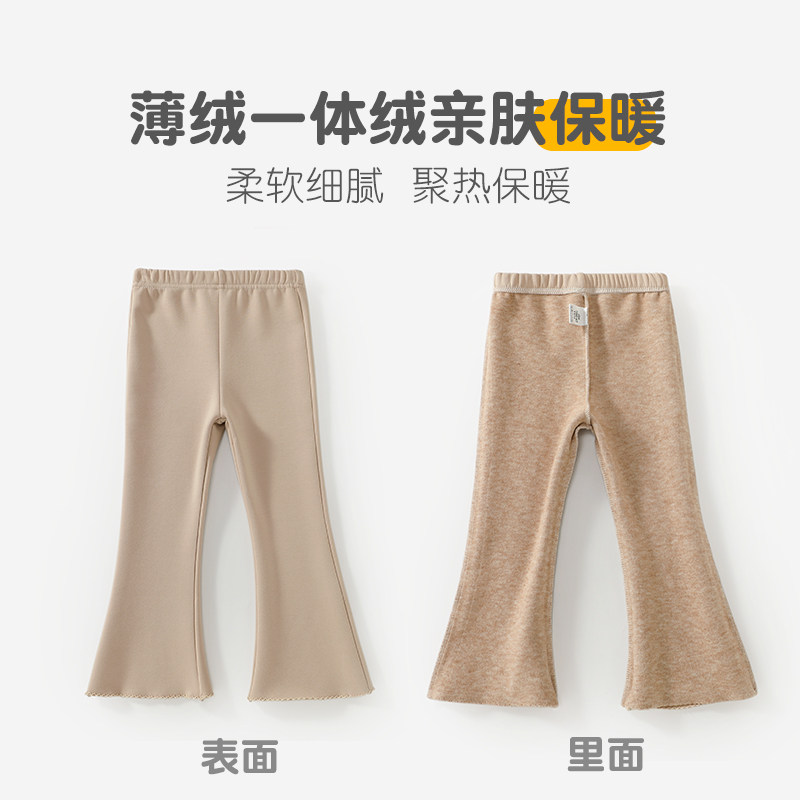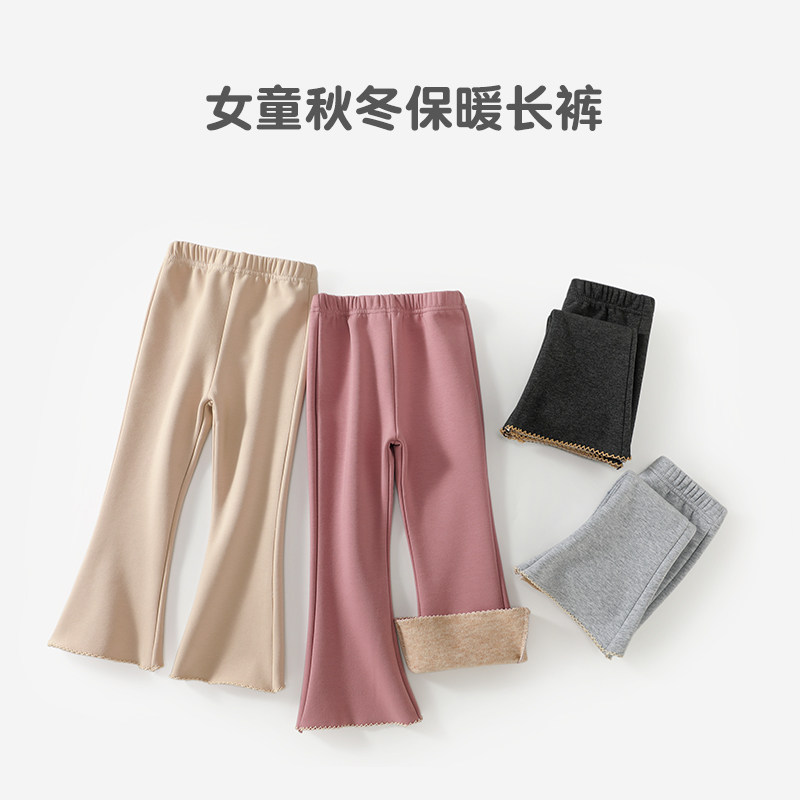 女童春秋冬季加绒加厚薄绒小女孩抗寒保暖长裤子儿童外穿微喇叭裤