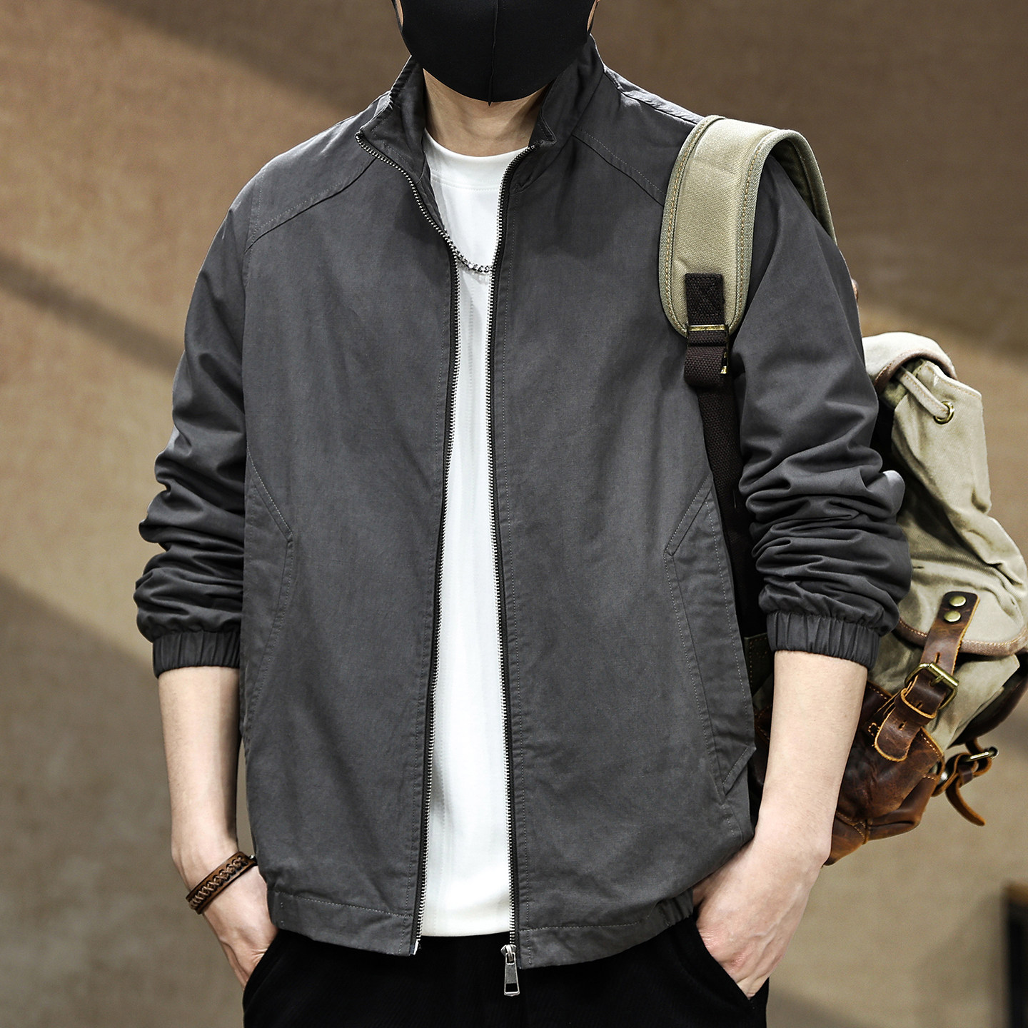 2026春季新款立领休闲夹克男士潮流百搭宽松上衣薄款工装男款外套