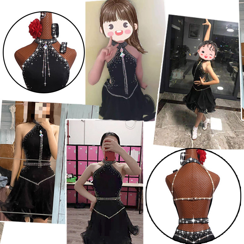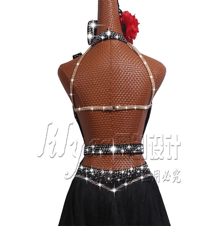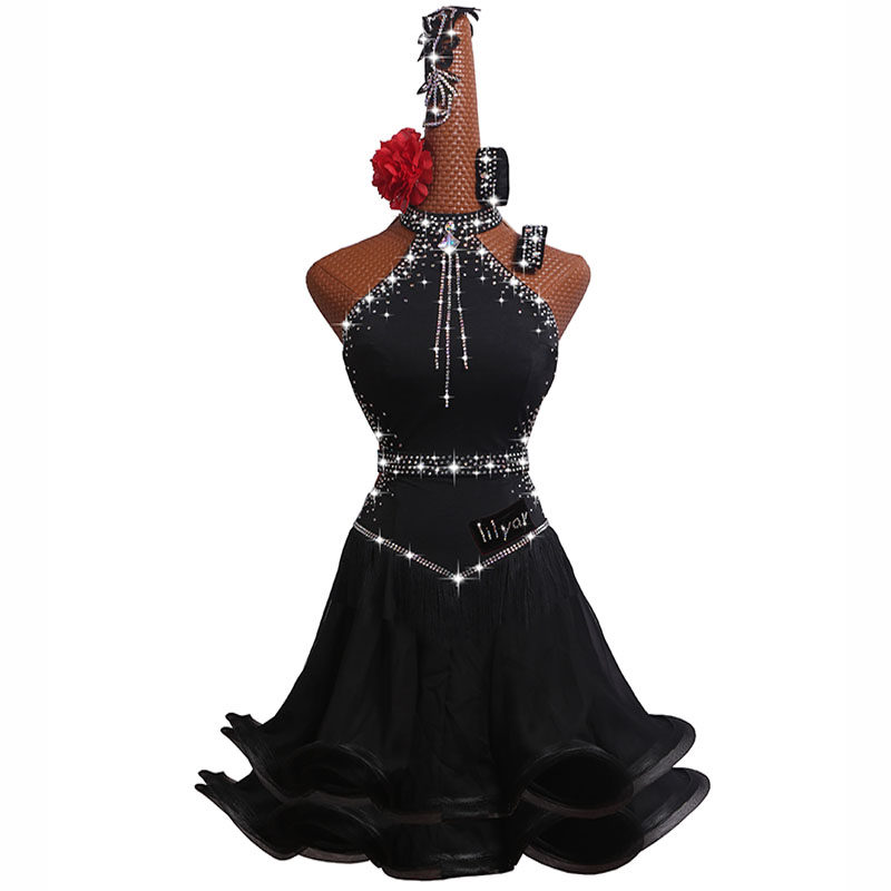 黎丽雅拉丁舞比赛服新款演出服表演裙高档黑色中式动感鱼骨卷边