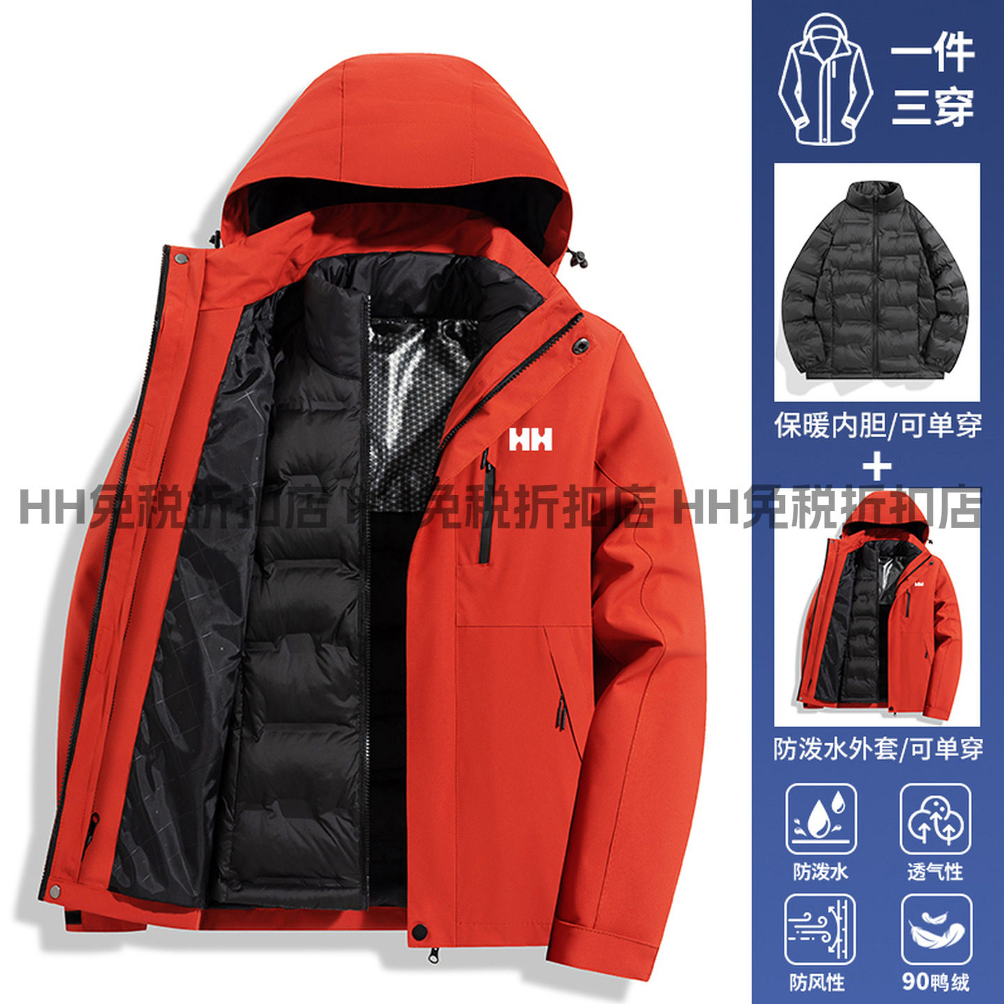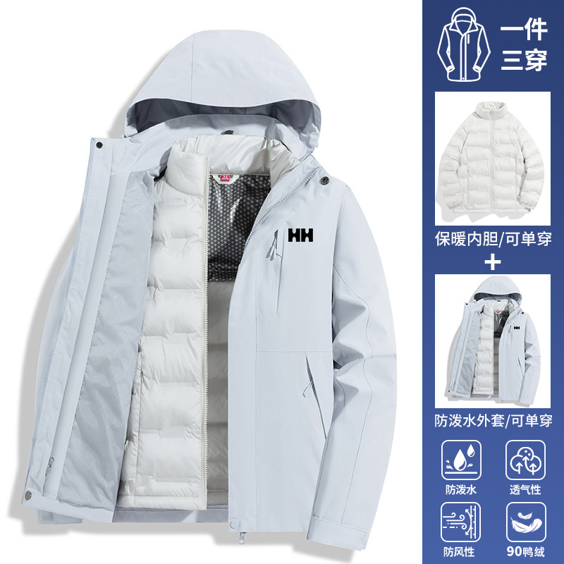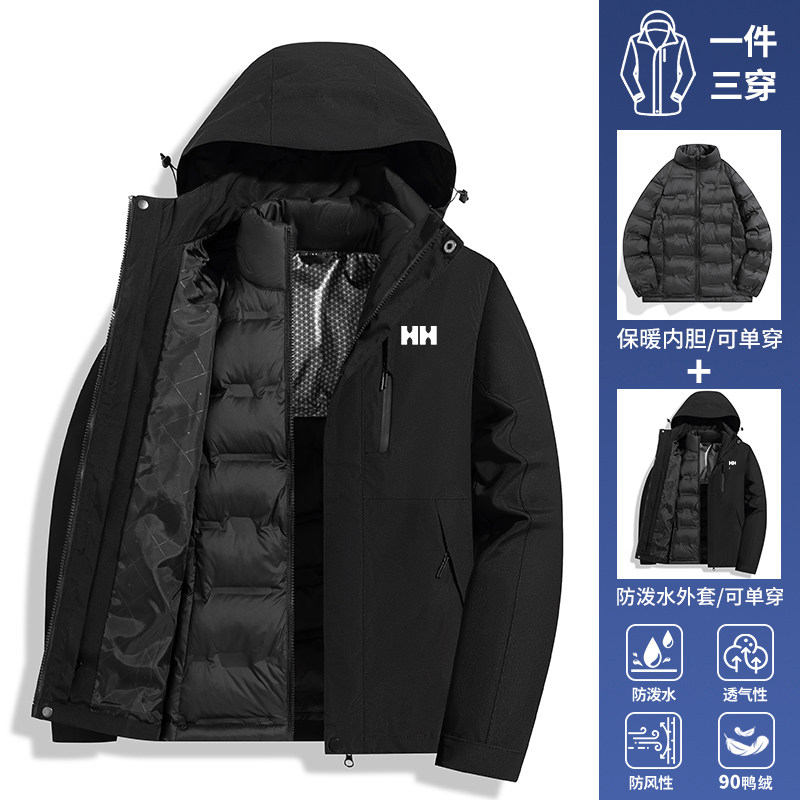 官方正品HH2025新款红色冲锋衣羽绒服女秋冬季可拆卸内胆外套男款