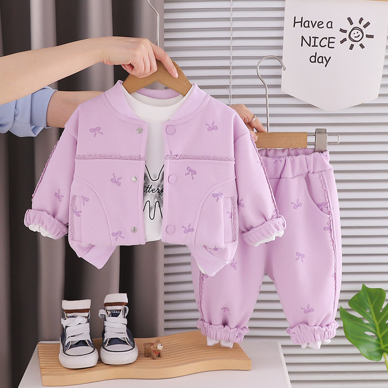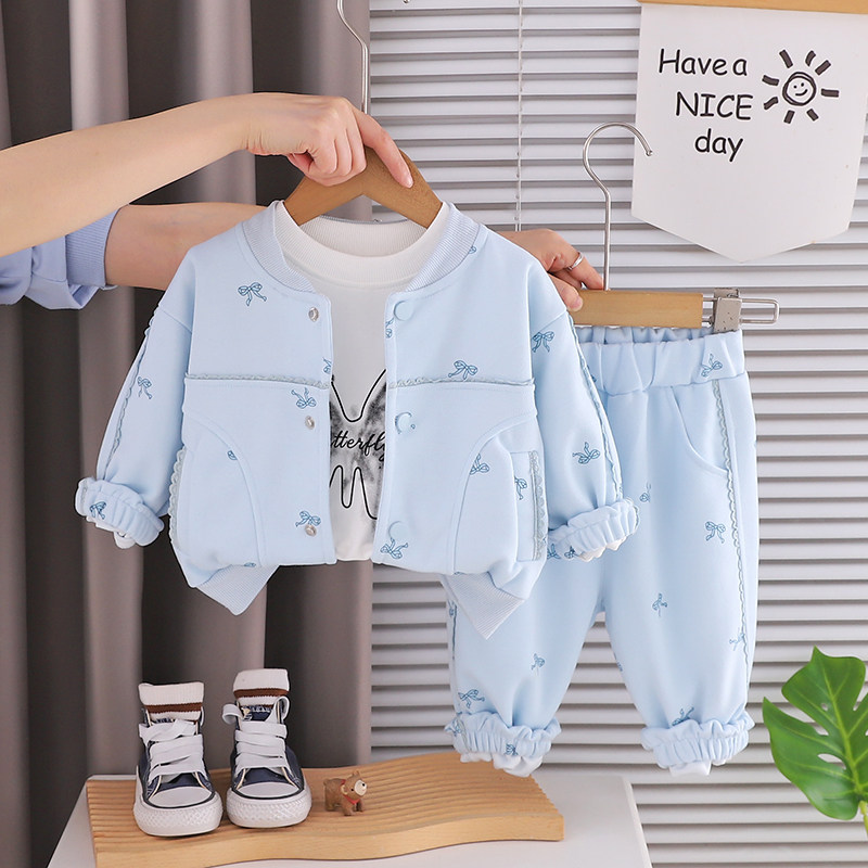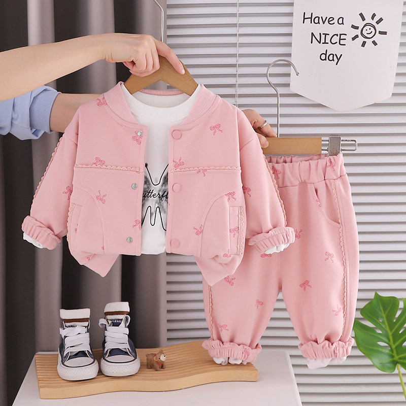 女童春装套装2026新款巨好看一整套女宝宝卫衣三件套女孩漂亮衣服