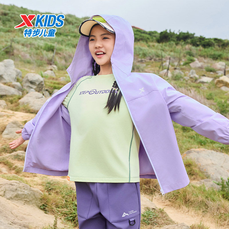 特步童装儿童外套女童2026春装秋季新款户外防风运动薄款风衣连帽