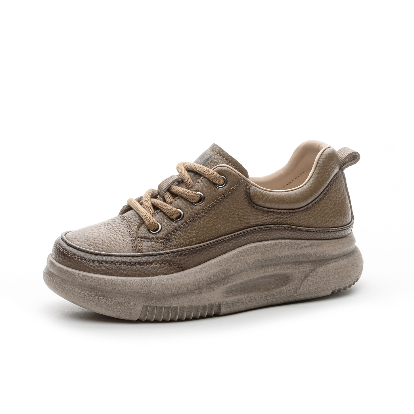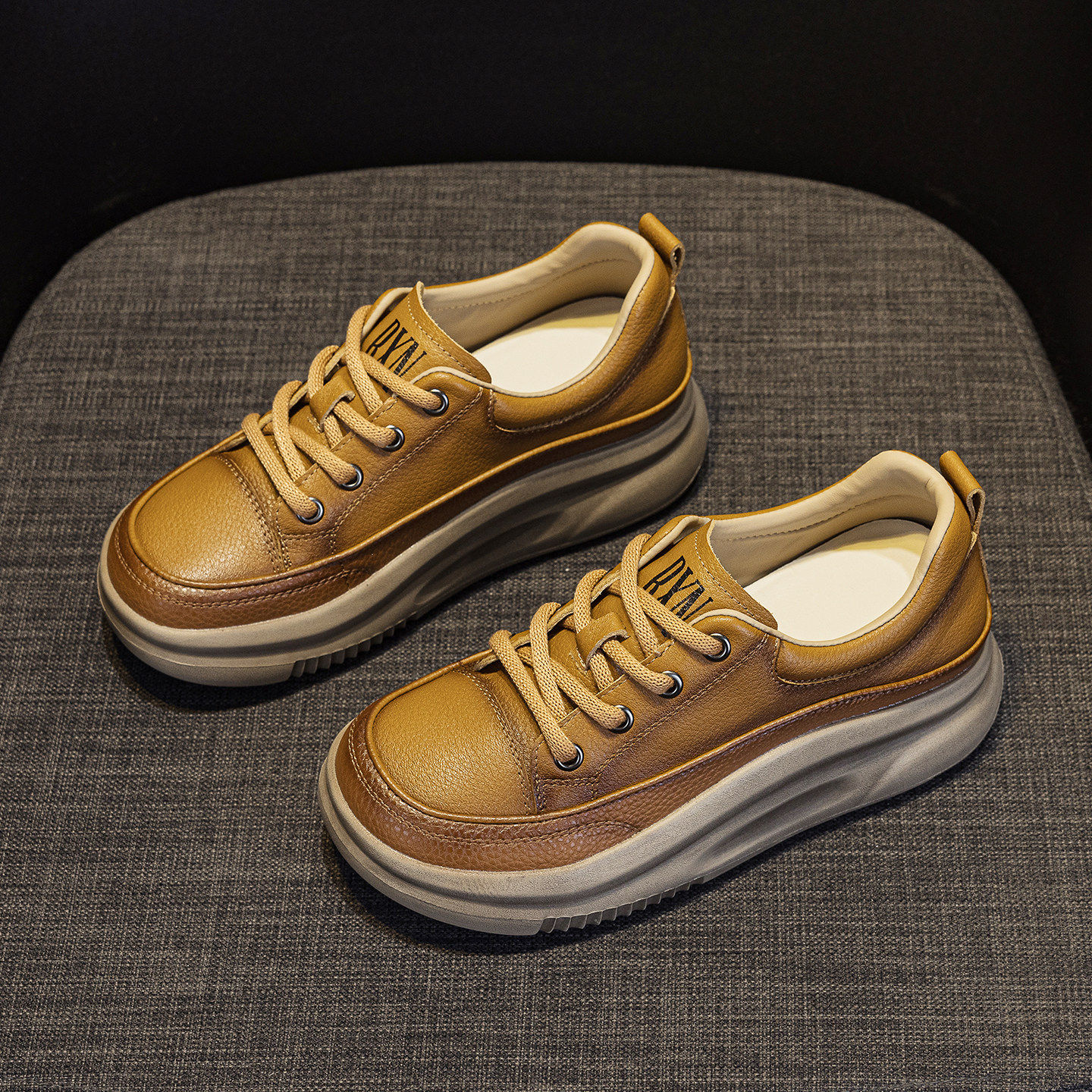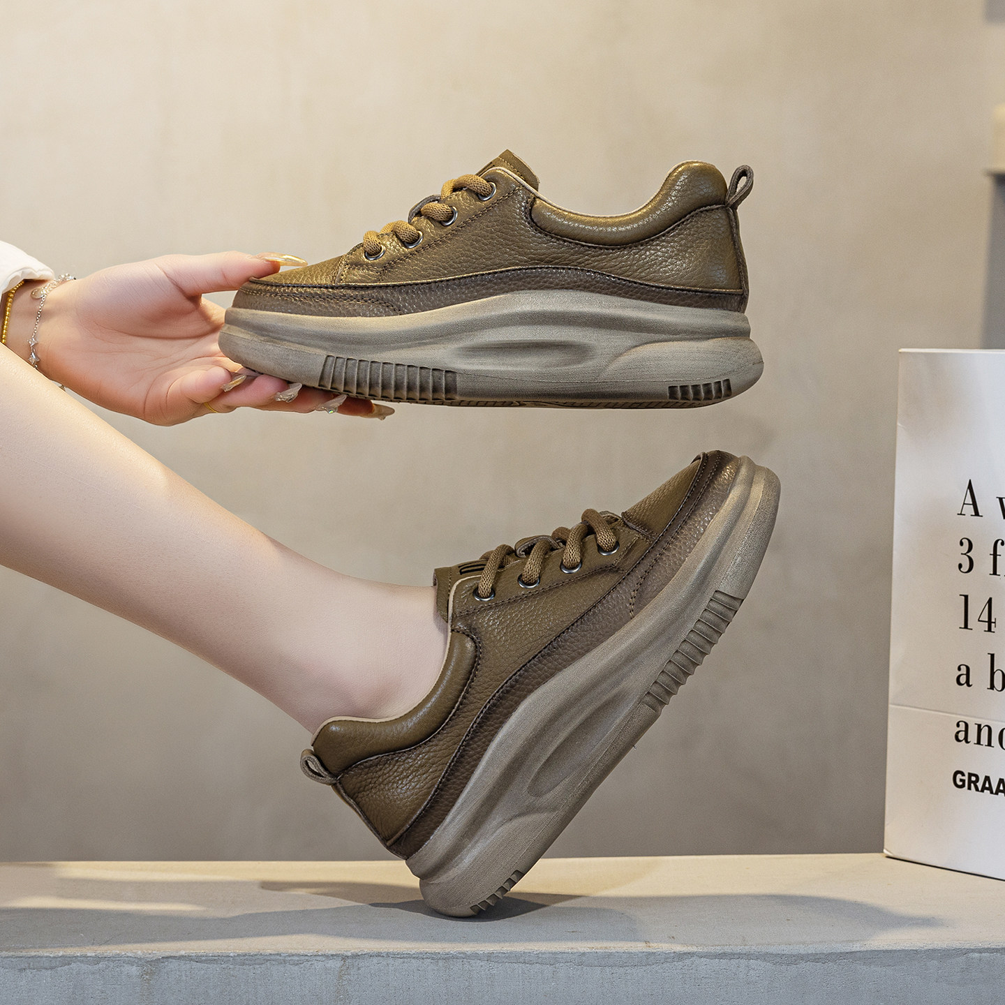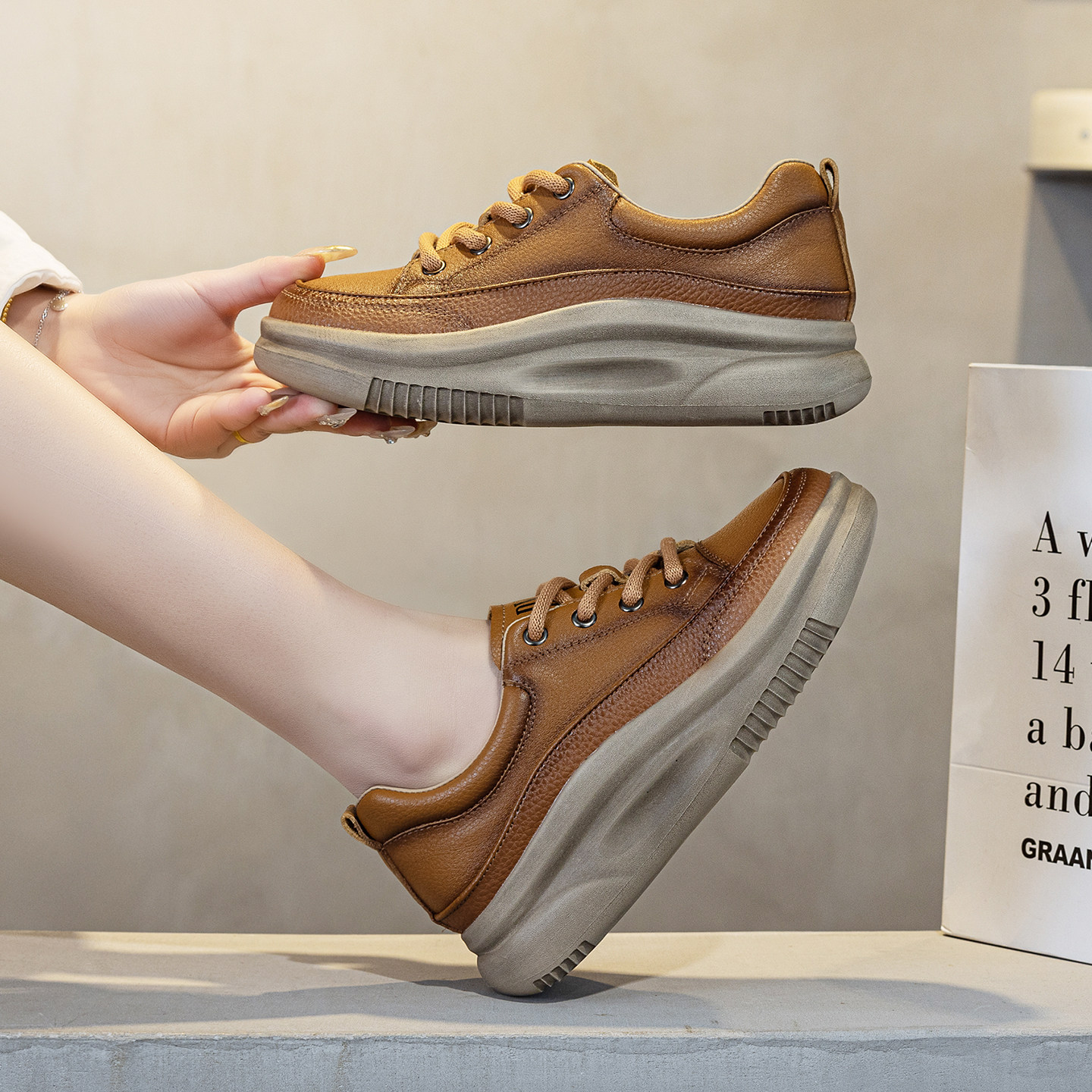 头层牛皮复古厚底低帮老爹鞋子女皮面女士单鞋百搭运动休闲阿甘鞋