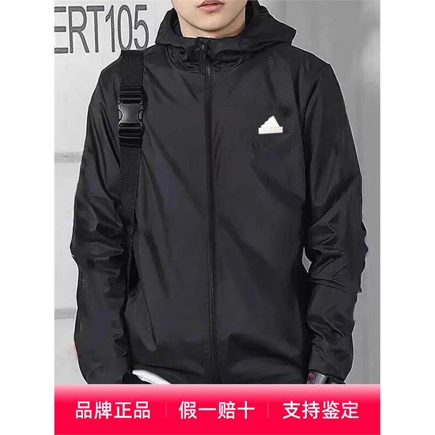 阿迪达斯外套男春季薄款防晒衣梭织防风夹克休闲运动皮肤衣IT3940