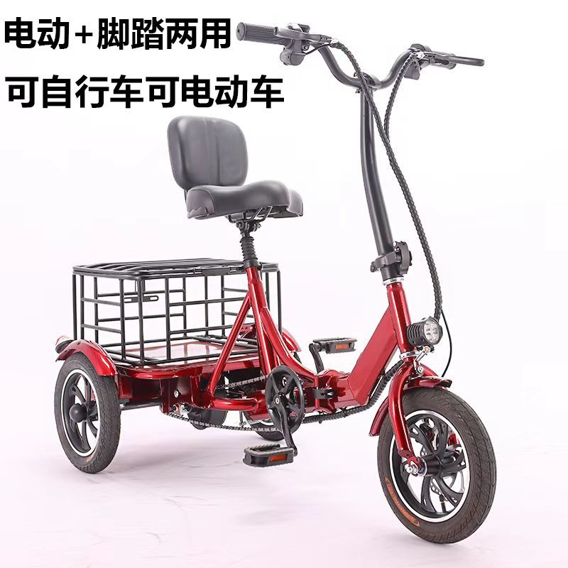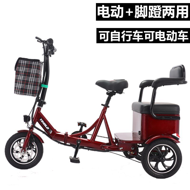 电动三轮车老年人助力脚踏成人家用折叠双L人小型迷你女士接送孩