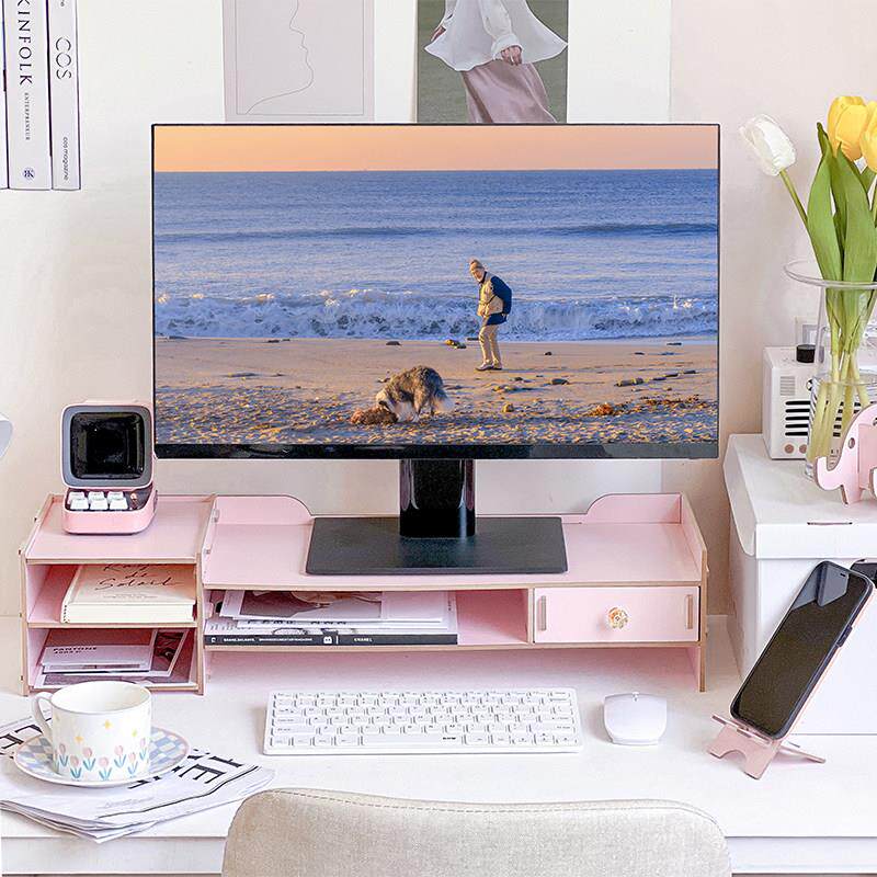 台式显示器屏电脑增高架子办公室底座支架桌面键盘抽屉收纳盒置物