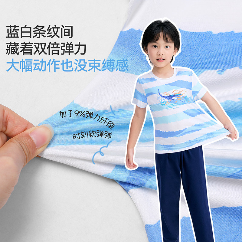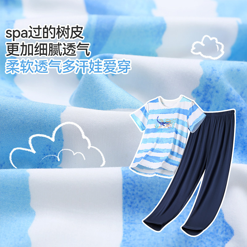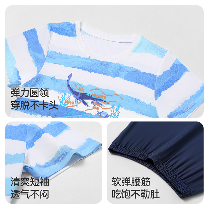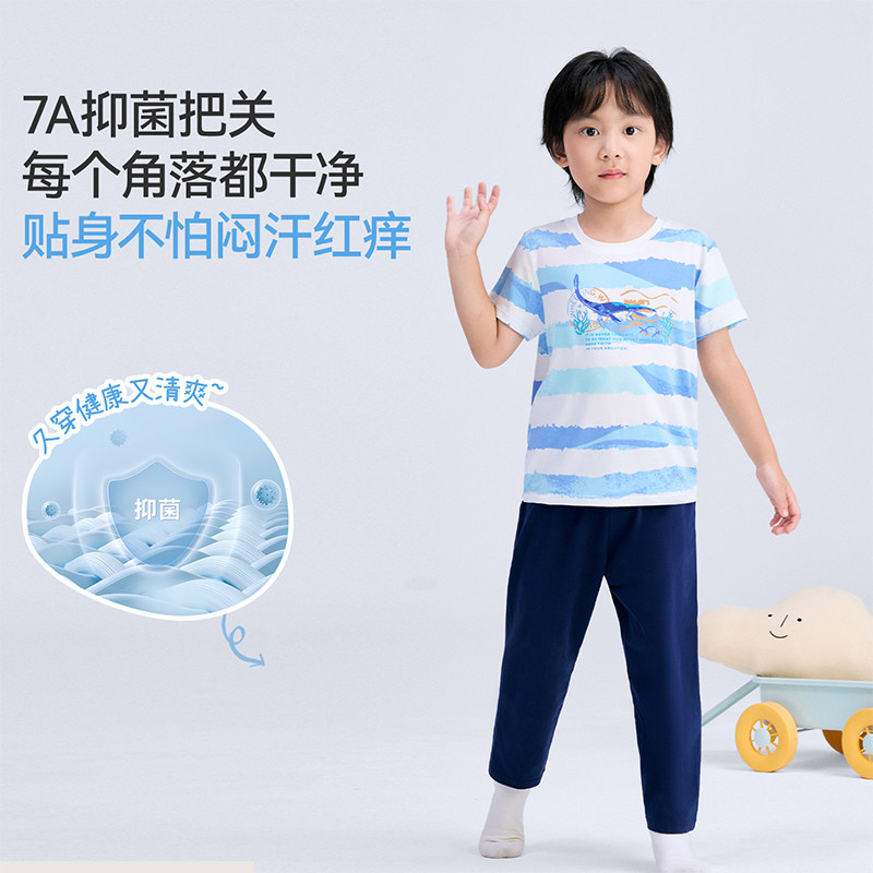 久岁伴男童睡衣儿童夏季薄款家居服中大童空调服新品短袖长裤套装