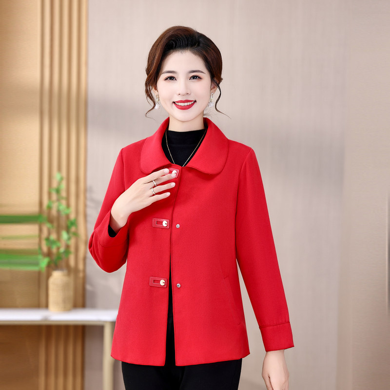 妈妈春装毛呢外套高贵2026新款时尚中年妇女春秋双面呢子上衣短款