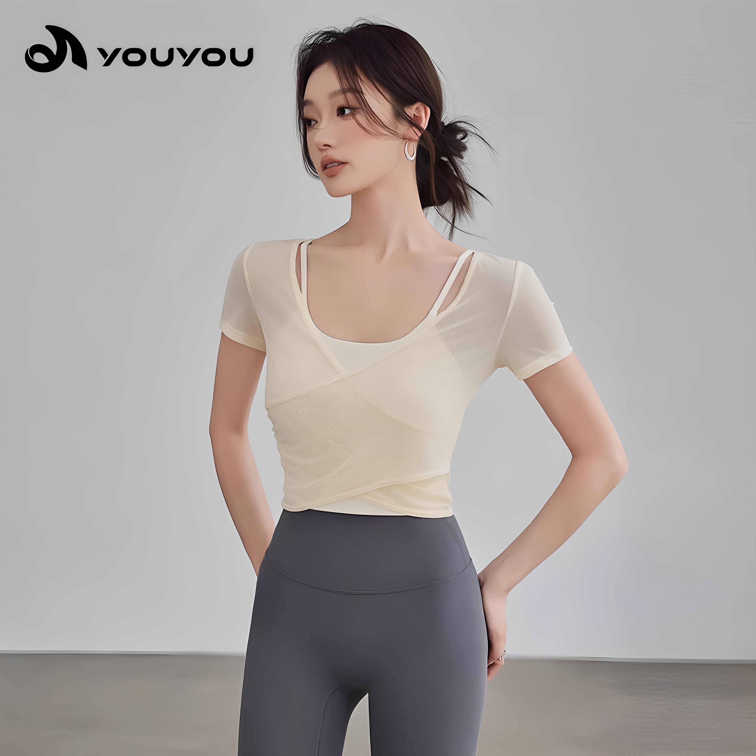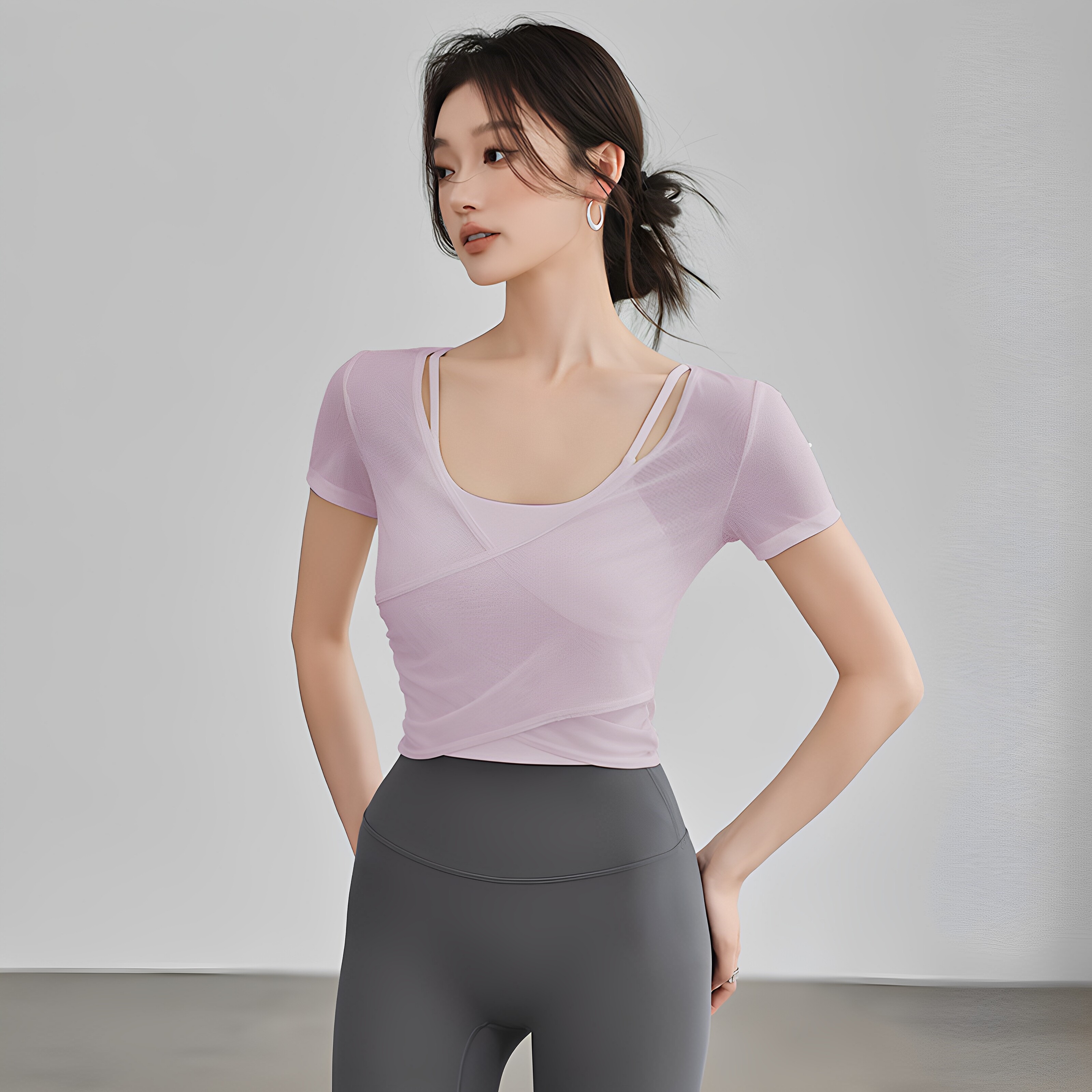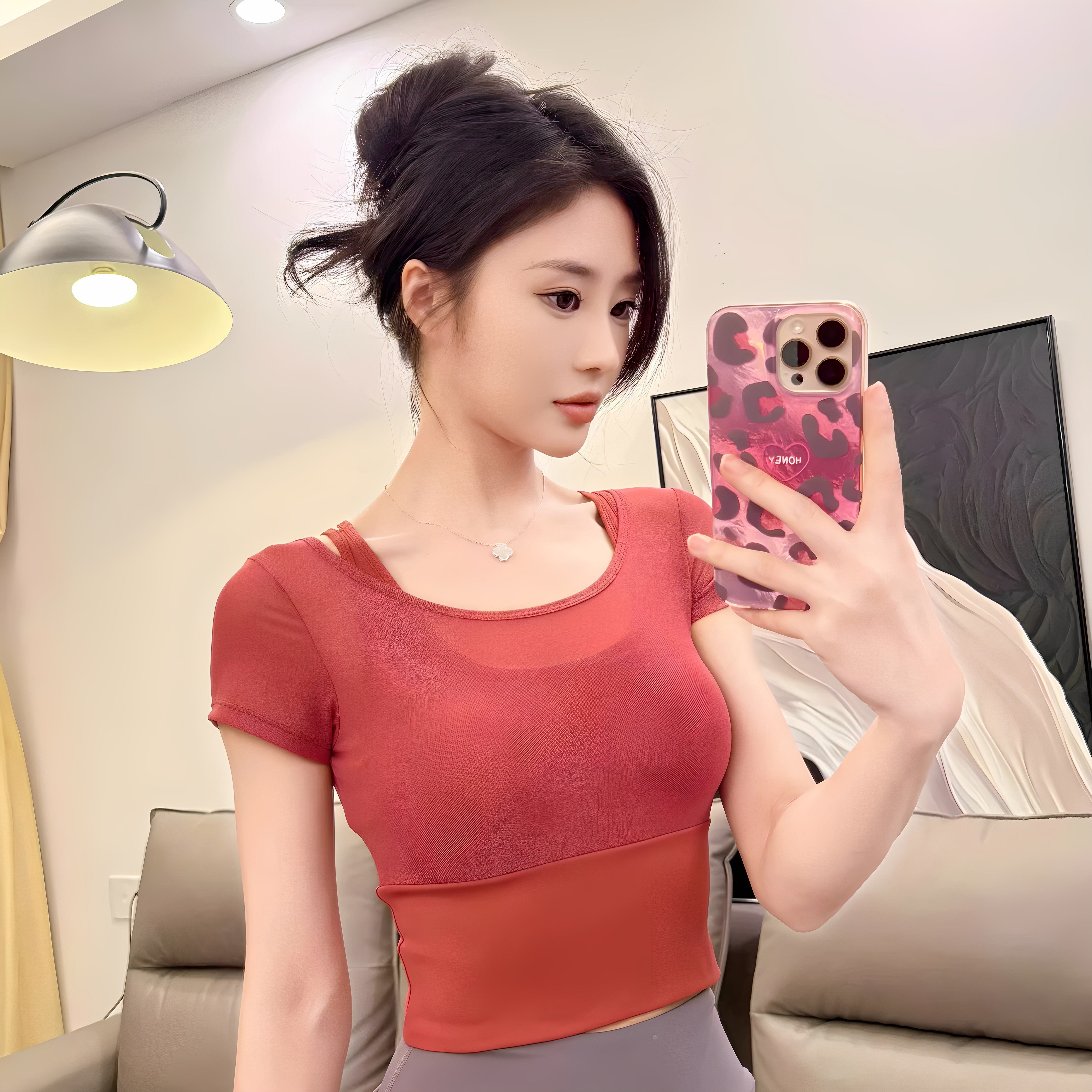 瑜伽服上衣女夏季高级感专业高端健身衣普拉提套装新款带胸垫短袖