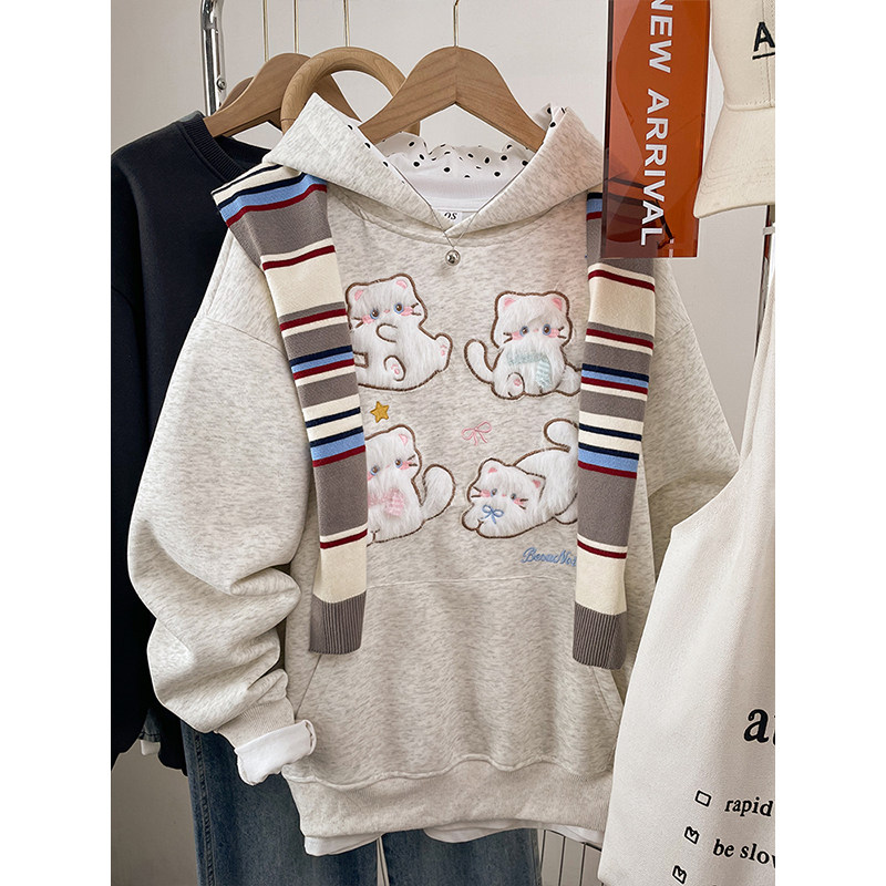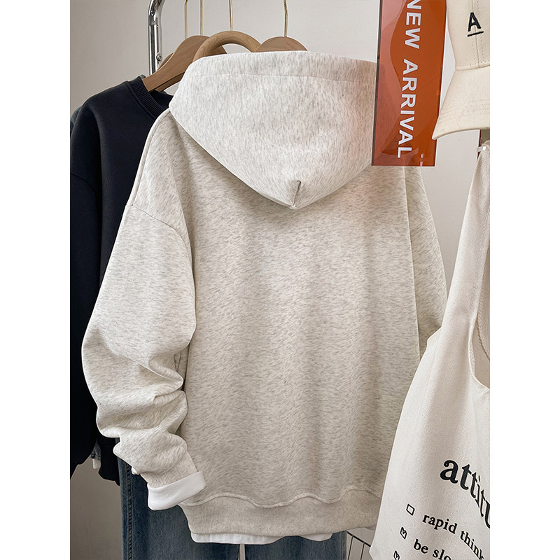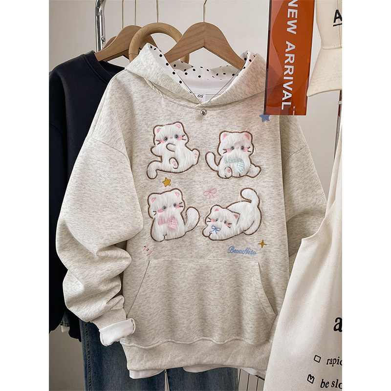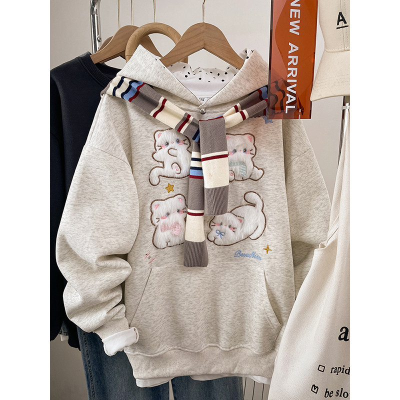 韩系胖mm大码女士卫衣女款2026新款加绒加厚秋冬季连帽刺绣上衣服