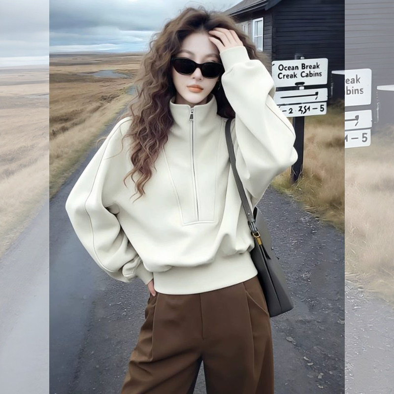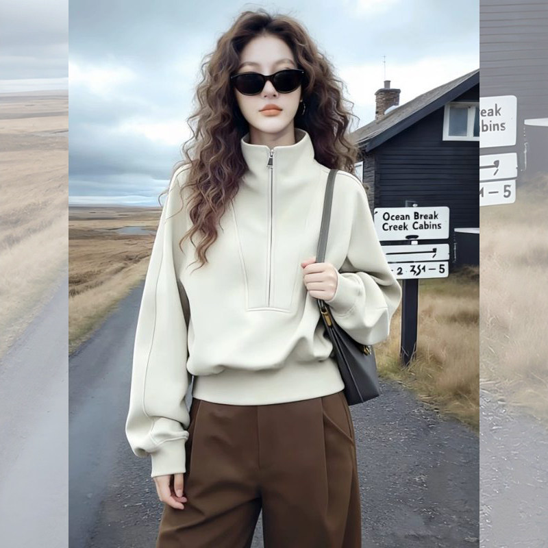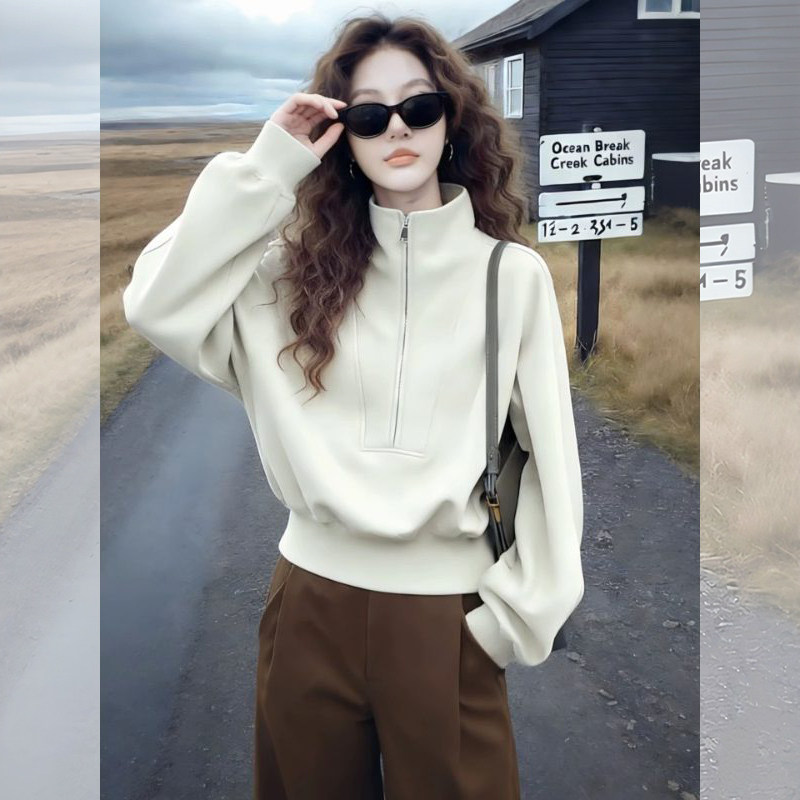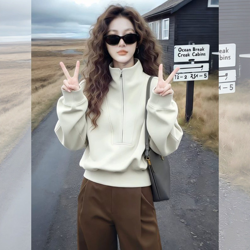 美式立领无帽卫衣女款加厚2026新款爆款春季时尚洋气减龄女士上衣