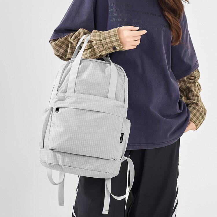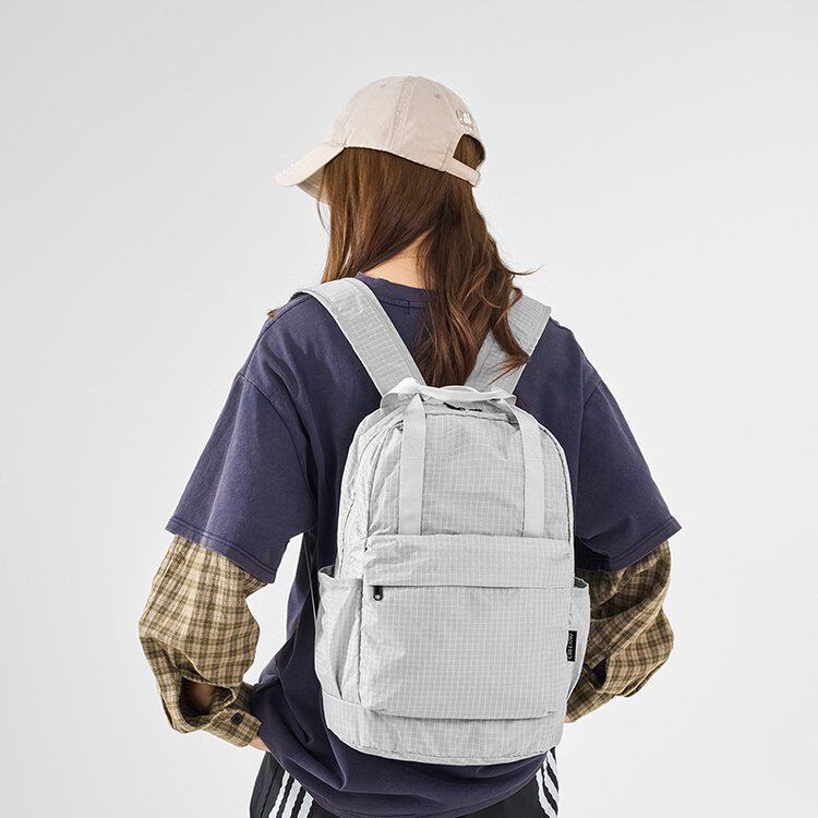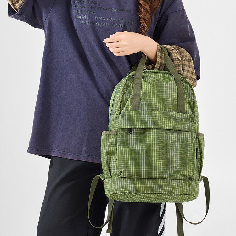 新款防水尼龙格纹可折叠轻便手提包双肩包轻便旅行大容量收纳包潮