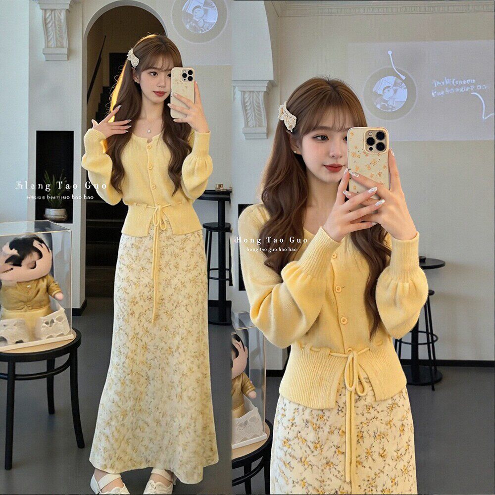 150小个子穿搭巨好看碎花半身裙套装女2026早春新款绝美两件套145