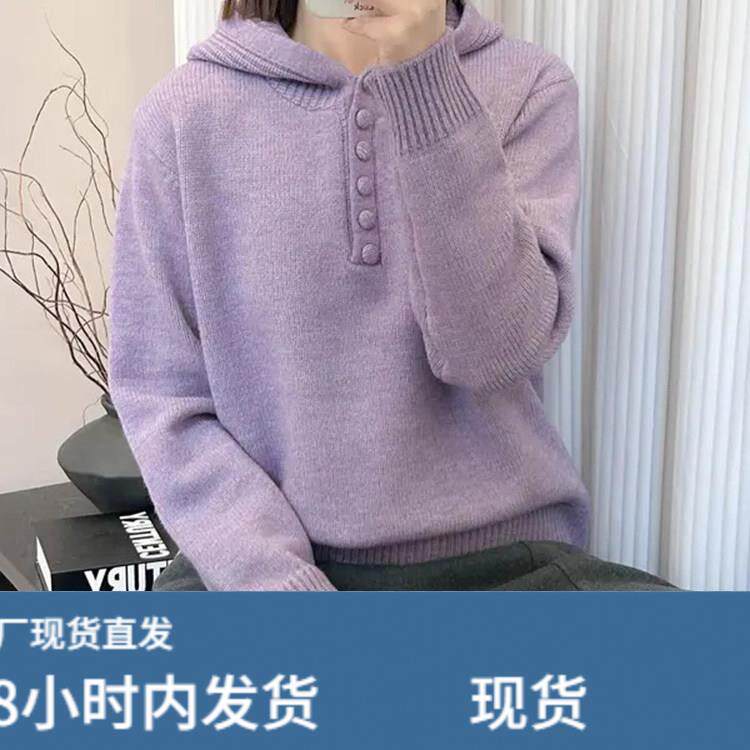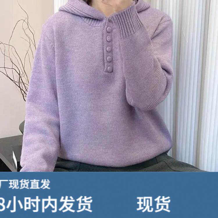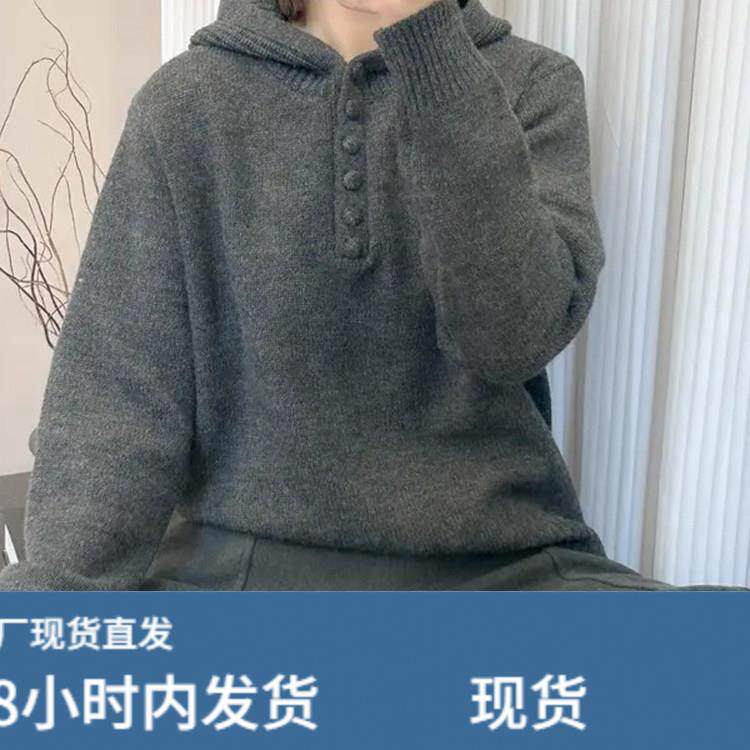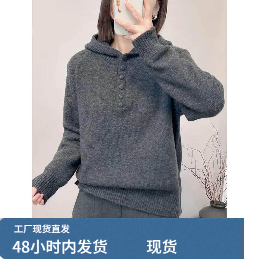 灰色连帽韩版毛衣女款2025新款冬季加厚宽松可外穿内搭针织打底衫