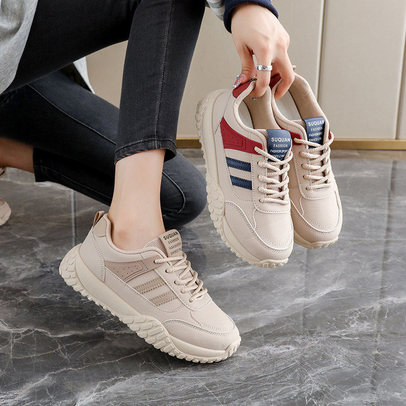踩屎感真皮阿甘运动鞋女款2026春季新款防水防滑轻便显脚小老爹鞋