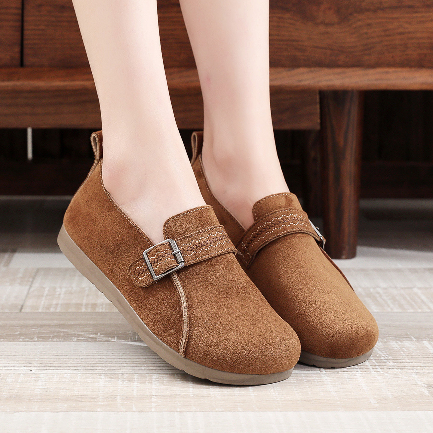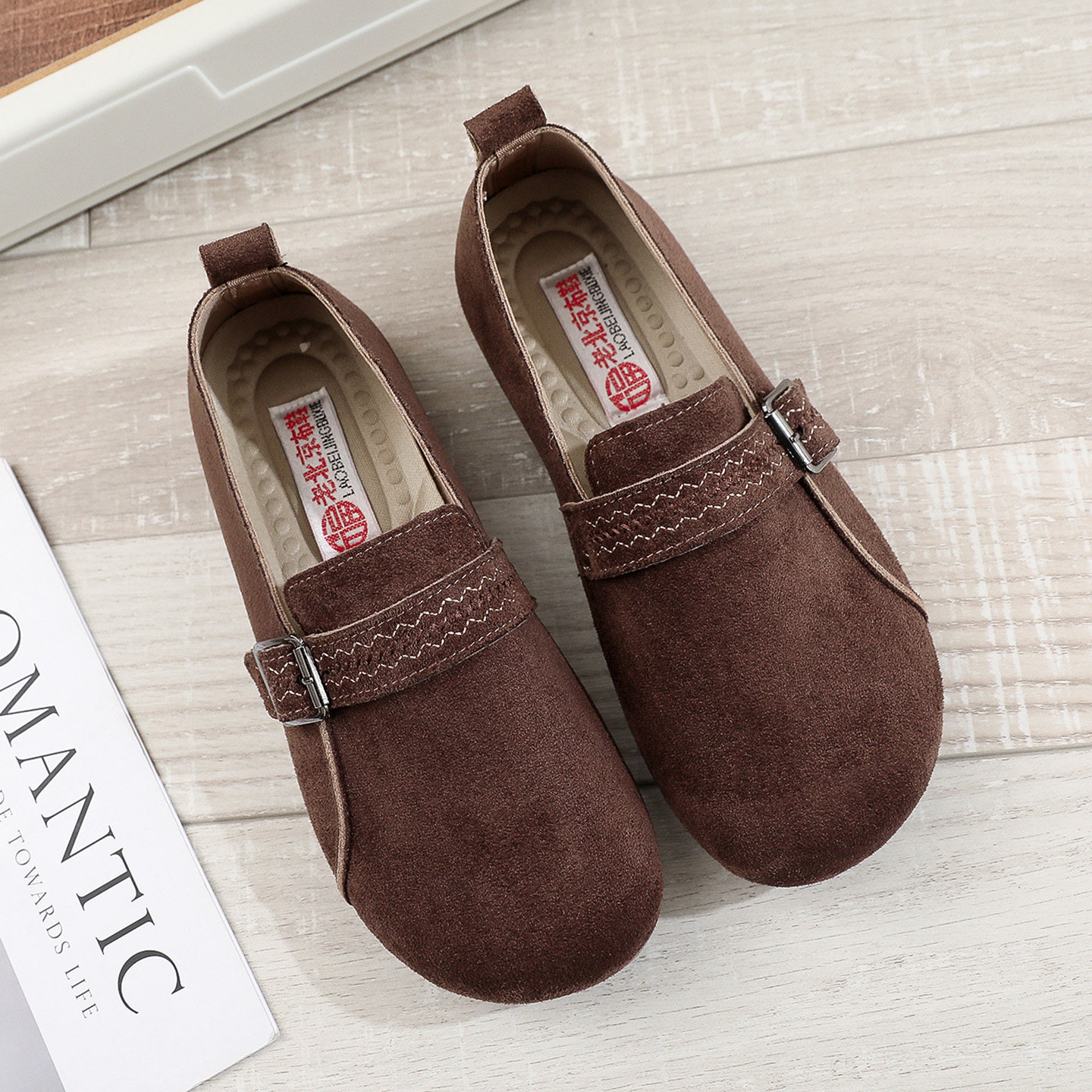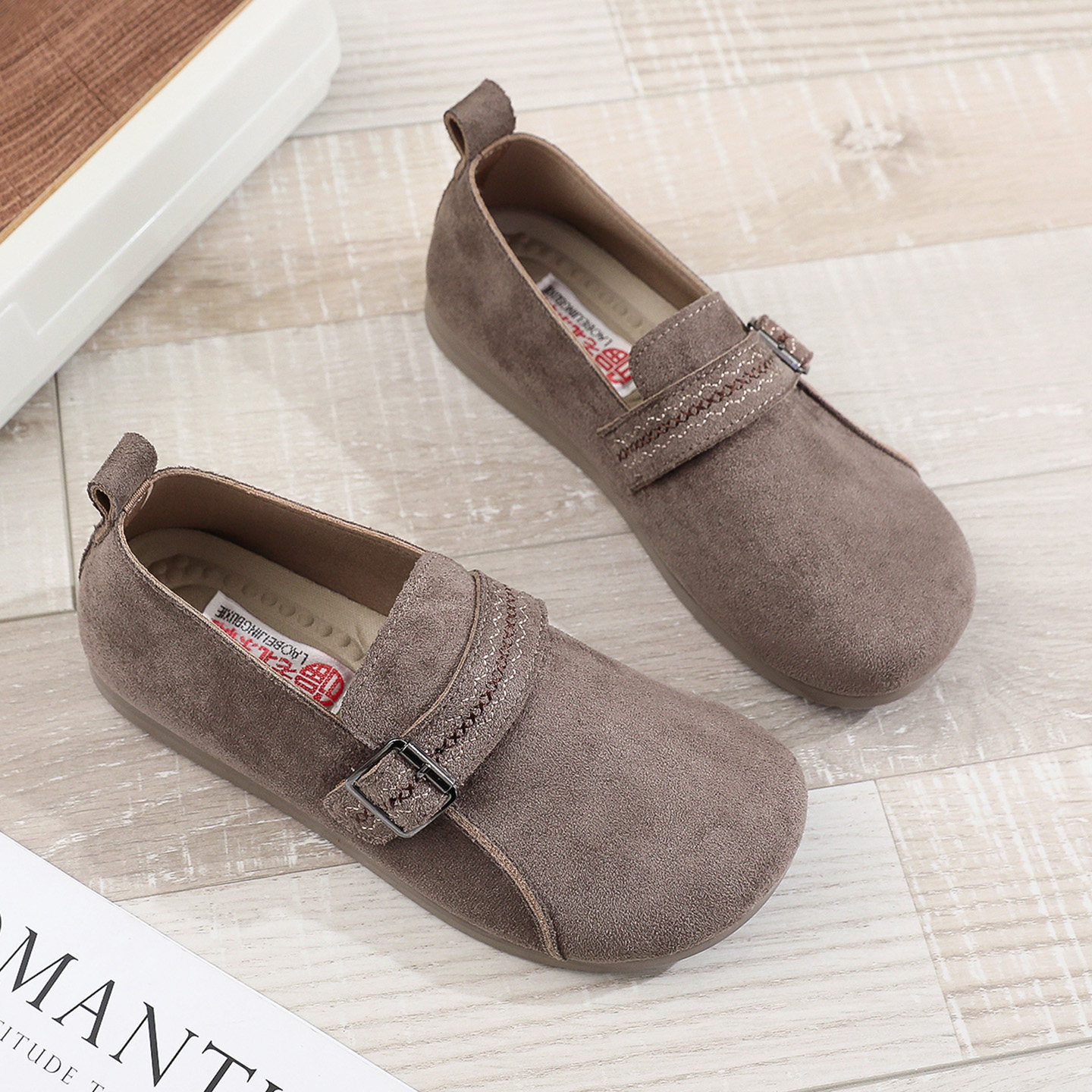 春季老北京布鞋女休闲风圆头平底一脚蹬女鞋扣带软底浅口百搭单鞋