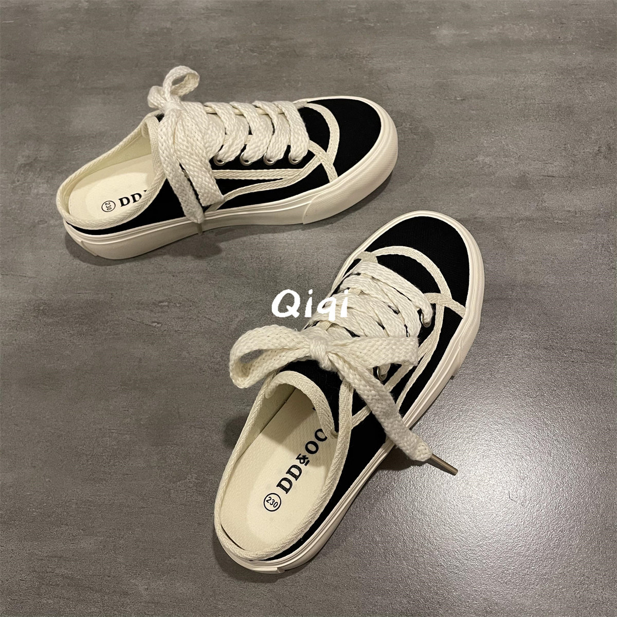 七七主人家半拖女鞋2023夏季薄款鞋子女一脚蹬帆布鞋女百搭板鞋女