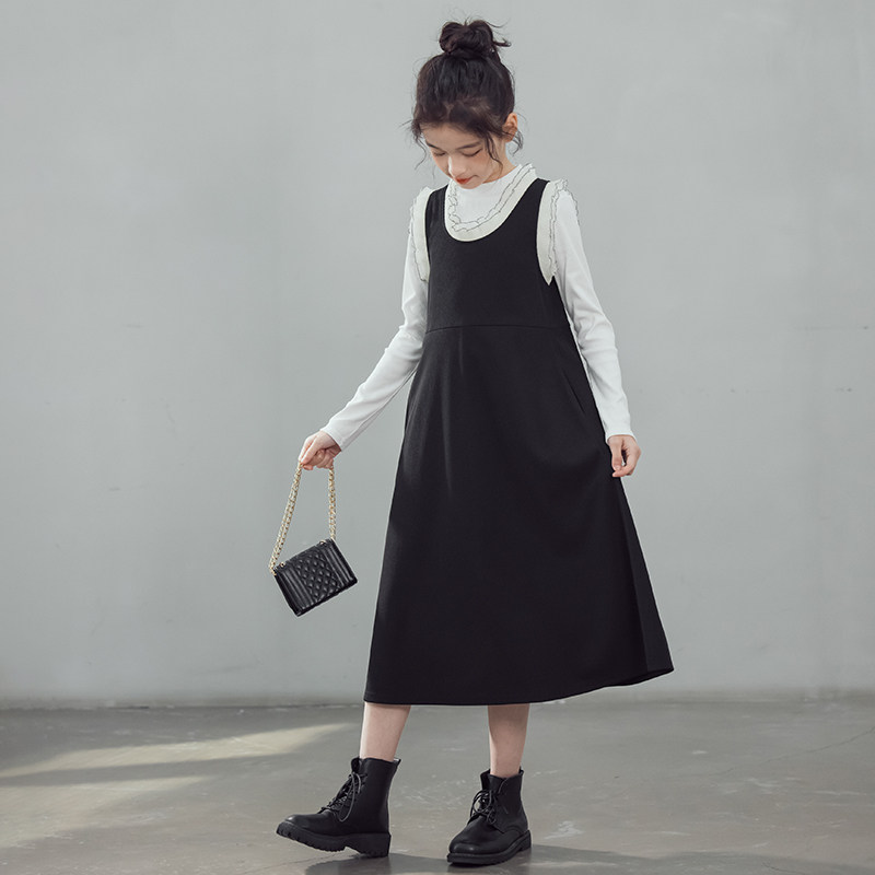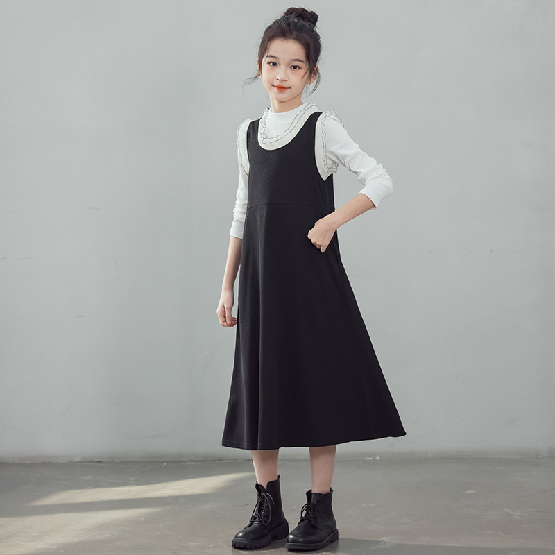 中大女童连衣裙2026春秋新款长袖打底衫背心裙套装两件套女孩洋气