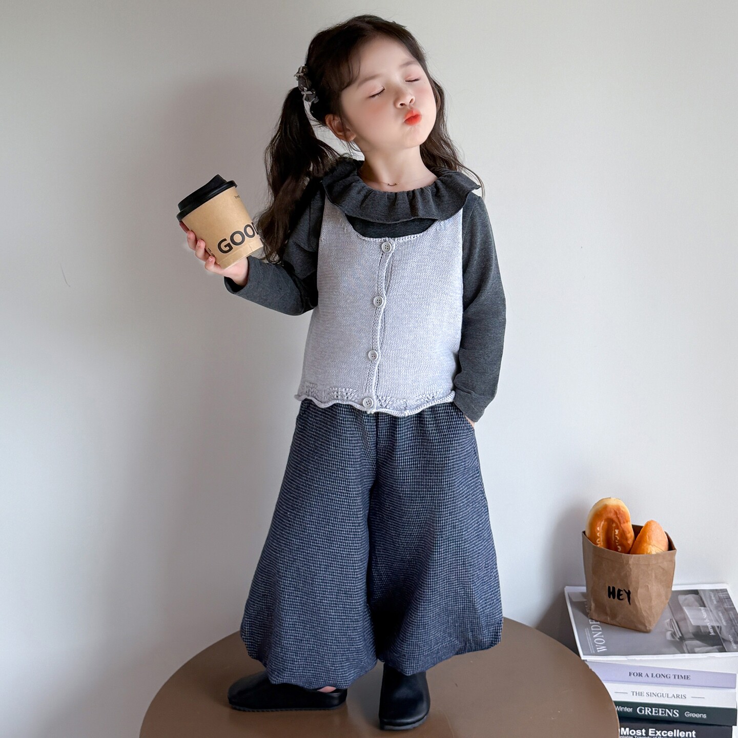 儿童洋气休闲春季2026新款三件套宝宝春秋女童花边领卫衣套装衣服