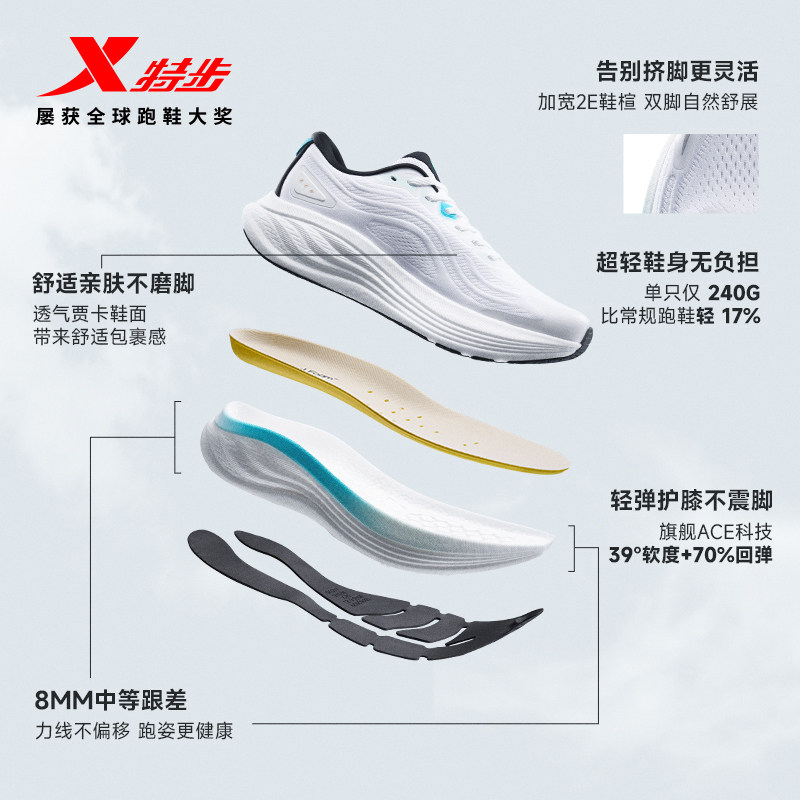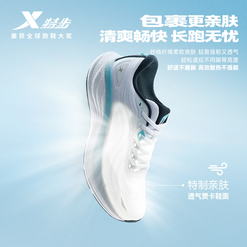 特步轻舟丨跑步鞋男鞋夏季网面透气运动鞋大体重减震轻便跑鞋女鞋