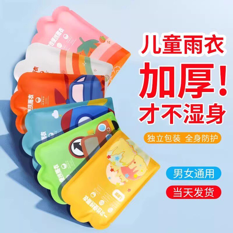 儿童便携一次性雨衣卡片防水宝宝成人雨披加厚学生上学专用旅行用