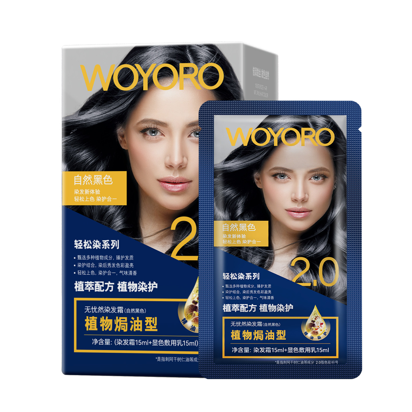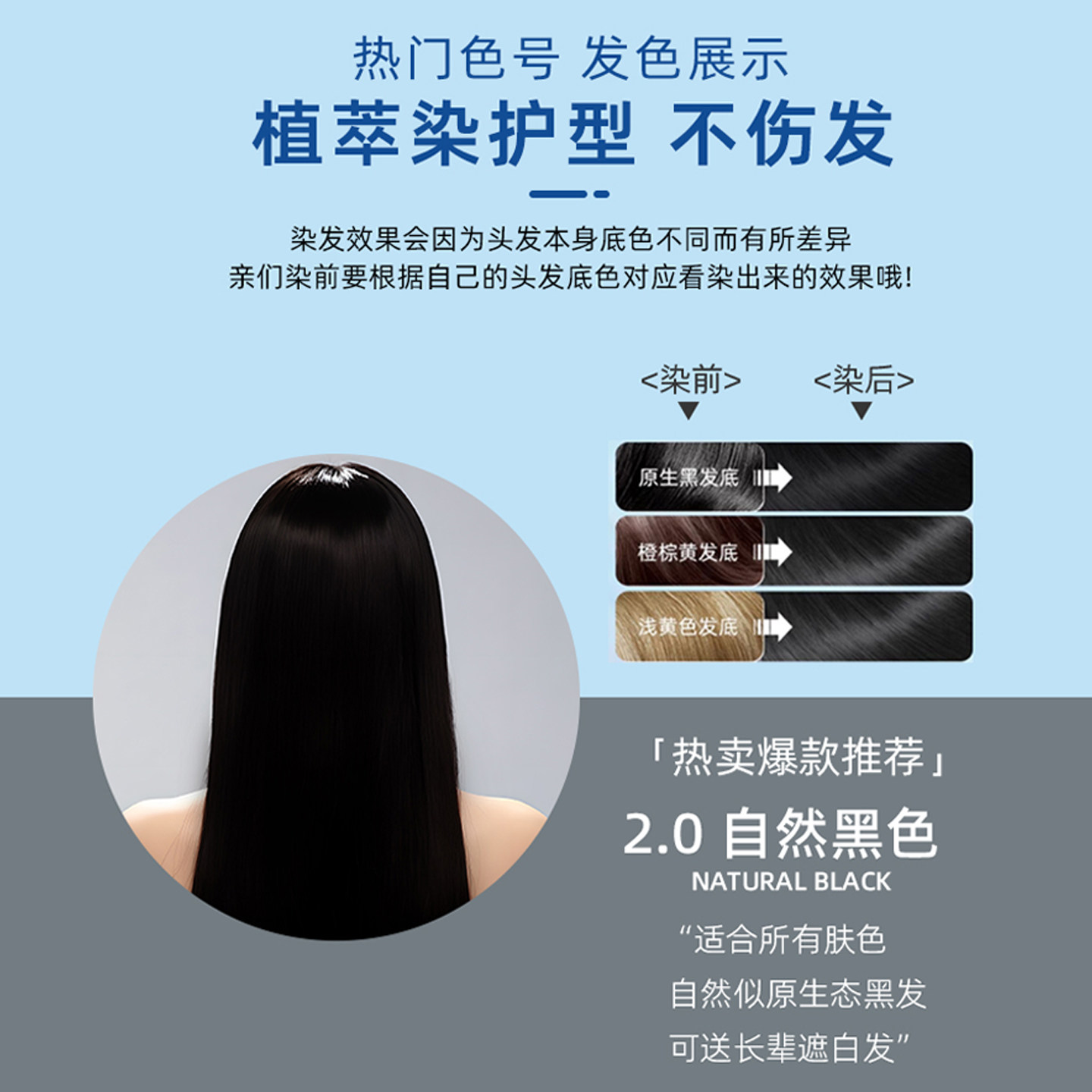 无忧然植物营养染发霜2.0自然黑色自然遮白发焗油不粘头皮染发剂
