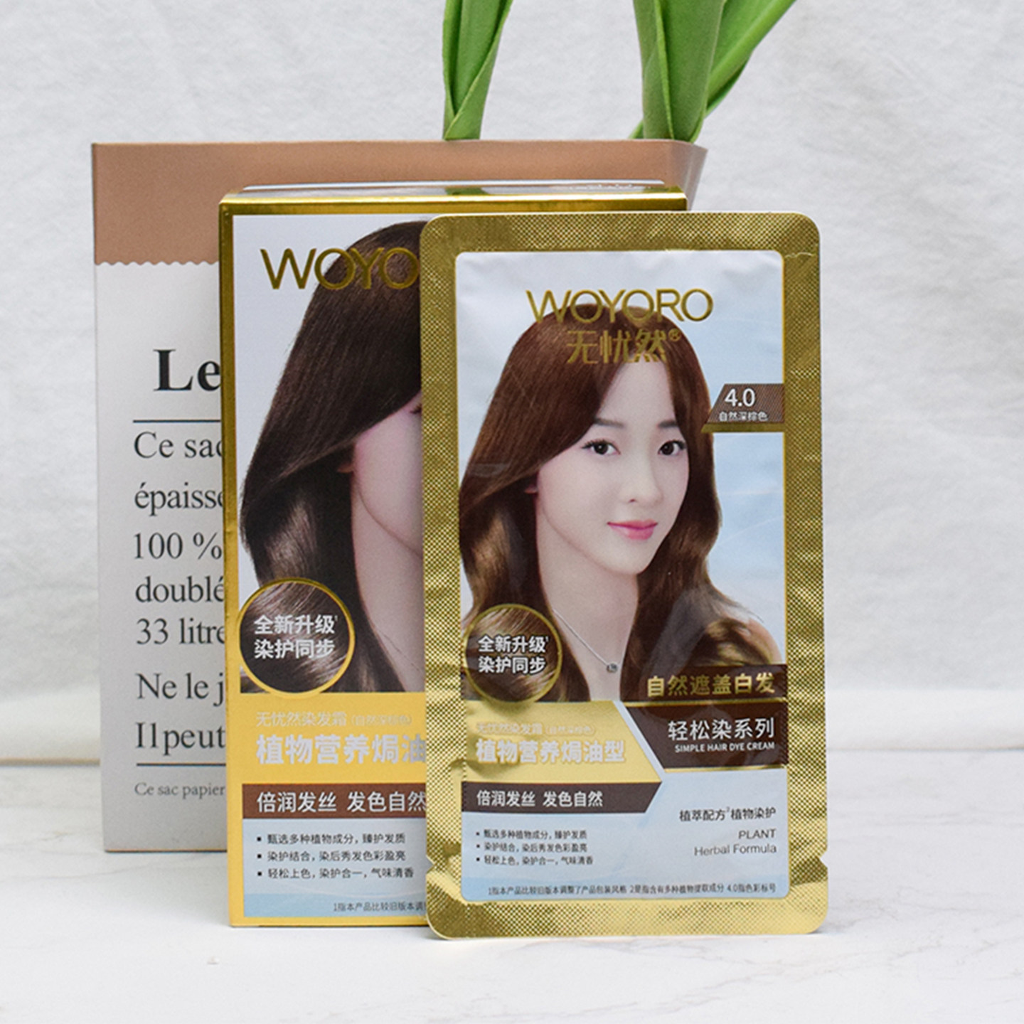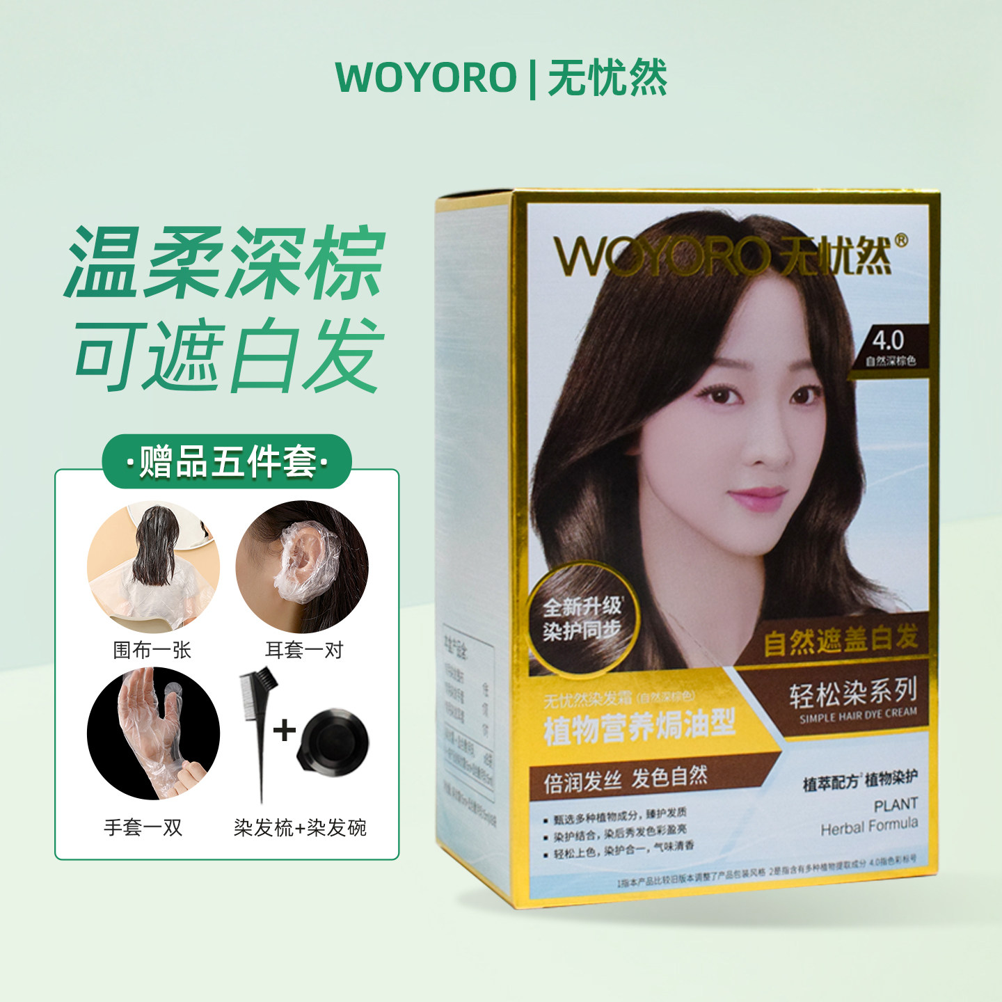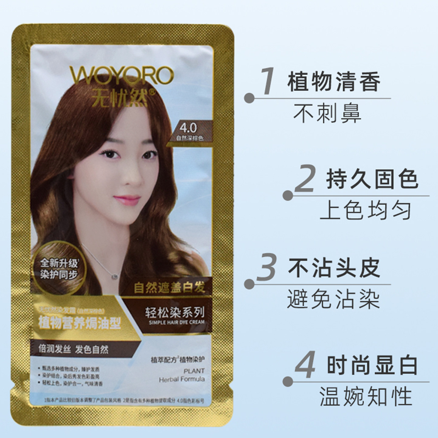 无忧然植物营养染发霜4.0自然深棕色遮盖白发自染焗油袋装染发剂